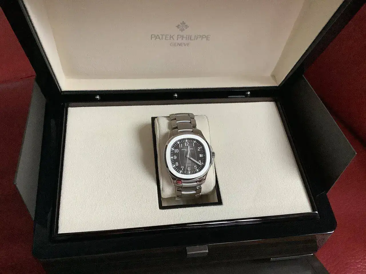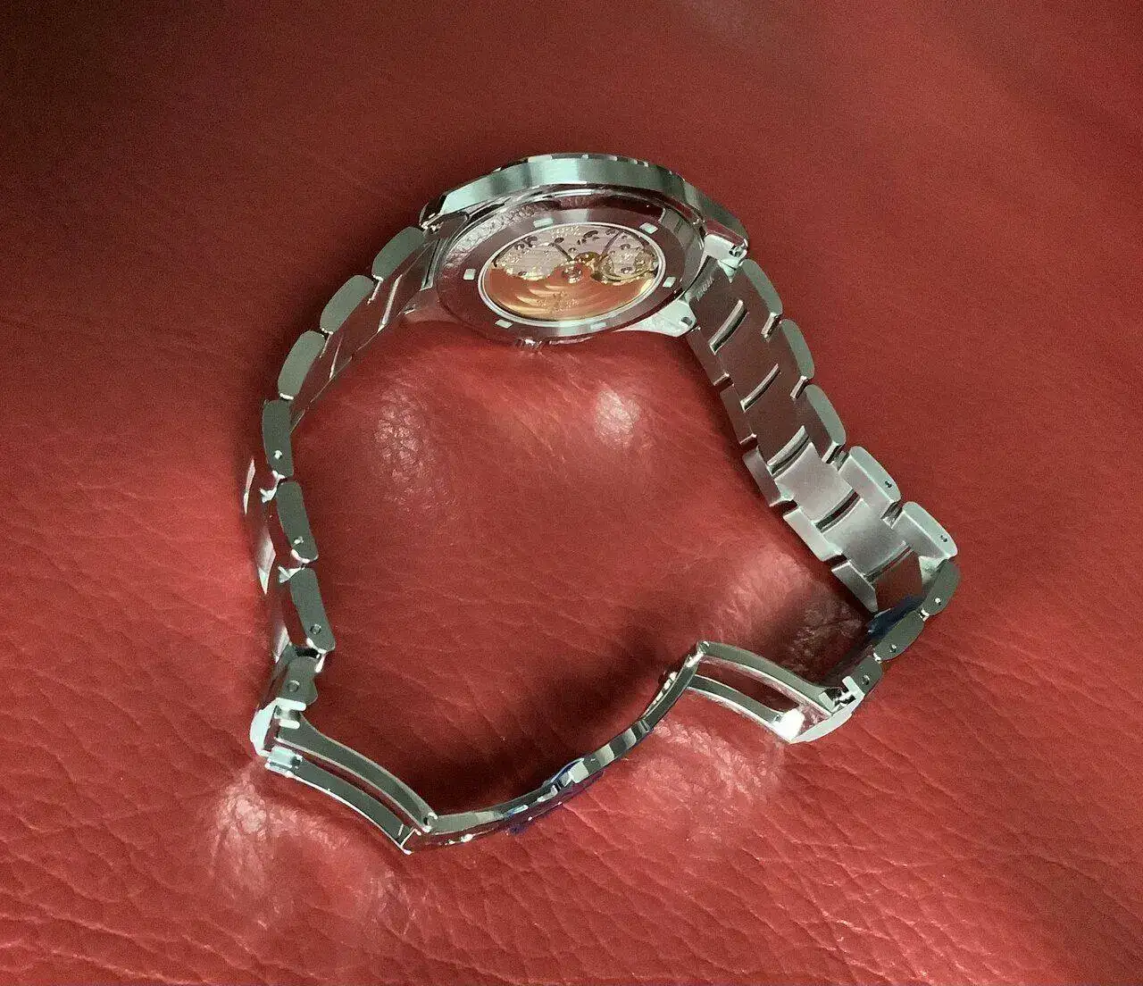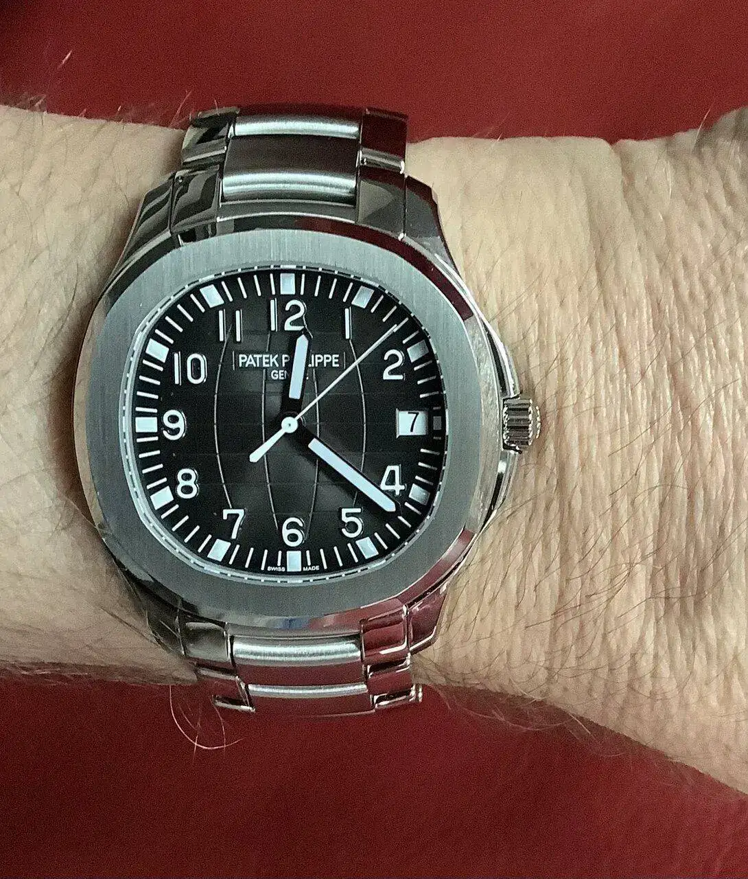Y por último os presento el tan codiciado y afamado PP Aquanaut 5167/1A con brazalete metálico que tuve la suerte de que fuera el primero que viniese con el nuevo calibre 26-330 SC (es el mismo calibre que monta el nuevo Nautilus 5812) con las mejoras incorporadas como parada de segundo para poner en hora, etc. la esfera es de color negra suave con efecto plateado, para nada es como se ve en la página ofIcíal, tiene un efecto cambiante plateado en función de como incide la luz en la esfera, se te cae la baba al mirarlo,las fotos no le hacen justicia.