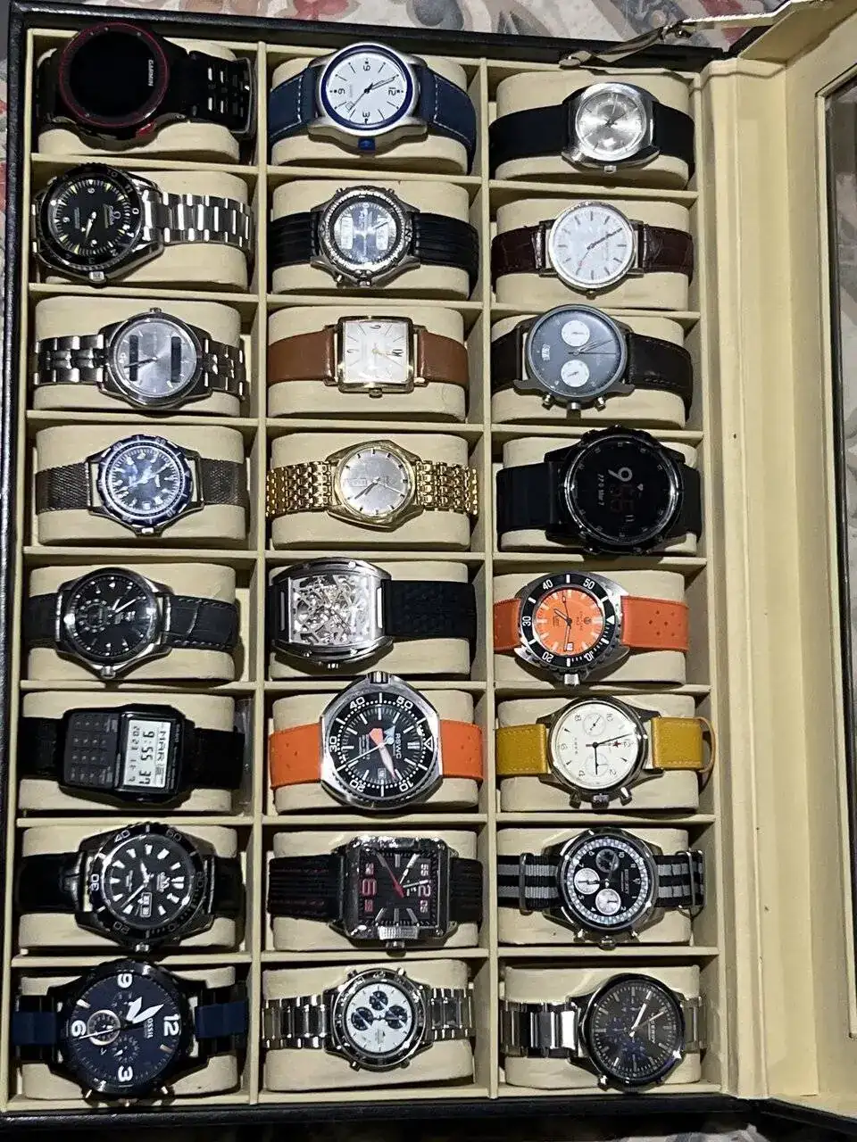 De la caja B, el reloj calculadora es una pieza mítica. Mi vista no atina a discernir con seguridad si es un Casio. Ese y el de abajo ¿Orient? son los que atrapan mi vista.Dicho y hecho ahi va la caja b (falta alguno)Ver el archivos adjunto 2729298
