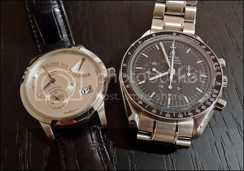 ), pero me gusta mucho porque se le ve un volumen espectacular al calibre del Speedy, parece que no lleva cristal, y evidentemente hace una buena pareja con el calibre del Pano, que sale desenfocado en beneficio del suizo: