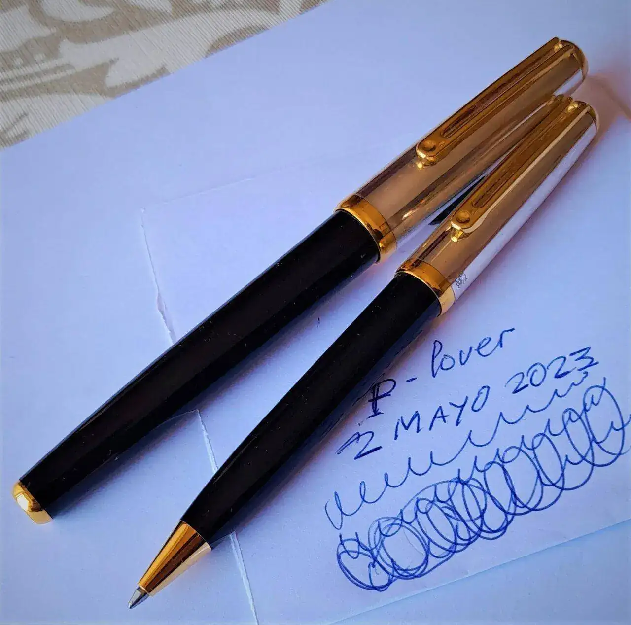 Hola ...... OFREZCO JUEGO PLUMA Y BOLIGRAFO INOXCROM SIROCCO CAPUCHON DE PLATA 925 Y CUERPO DE RESINA NEGRA, POR NO USAR.....