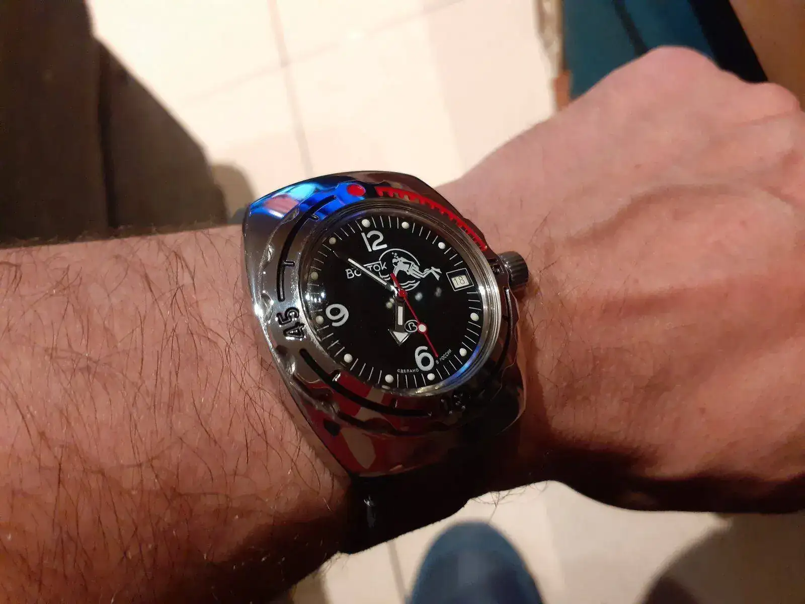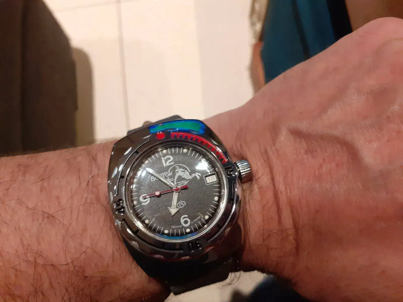 Hoy estrenando un regalo de mi pareja, que sin entender nada de relojes, documentándose por su cuenta, y sin haber oído hablar nuca de esta marca, va y me regala un Vostock amphibia.....estoy encantadísimo