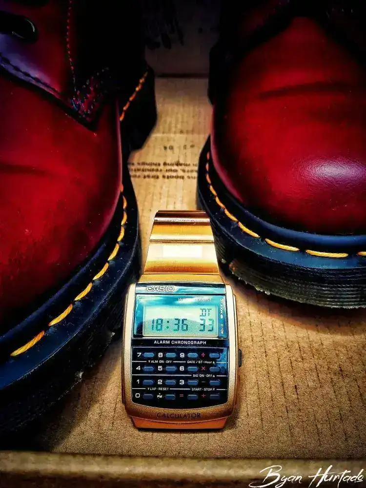 Dr. Martens Cherry Red y Casio calculadora para este jueves.