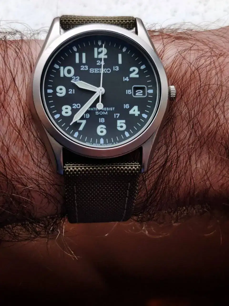 Tiene un aire a los hamilton .Buen día, hoy Seiko 7n42-8070 a4, según he leído es una versión rara que fue probada por el ejército británico pero no debió de dar la talla porque eligieron un Pulsar más barato.