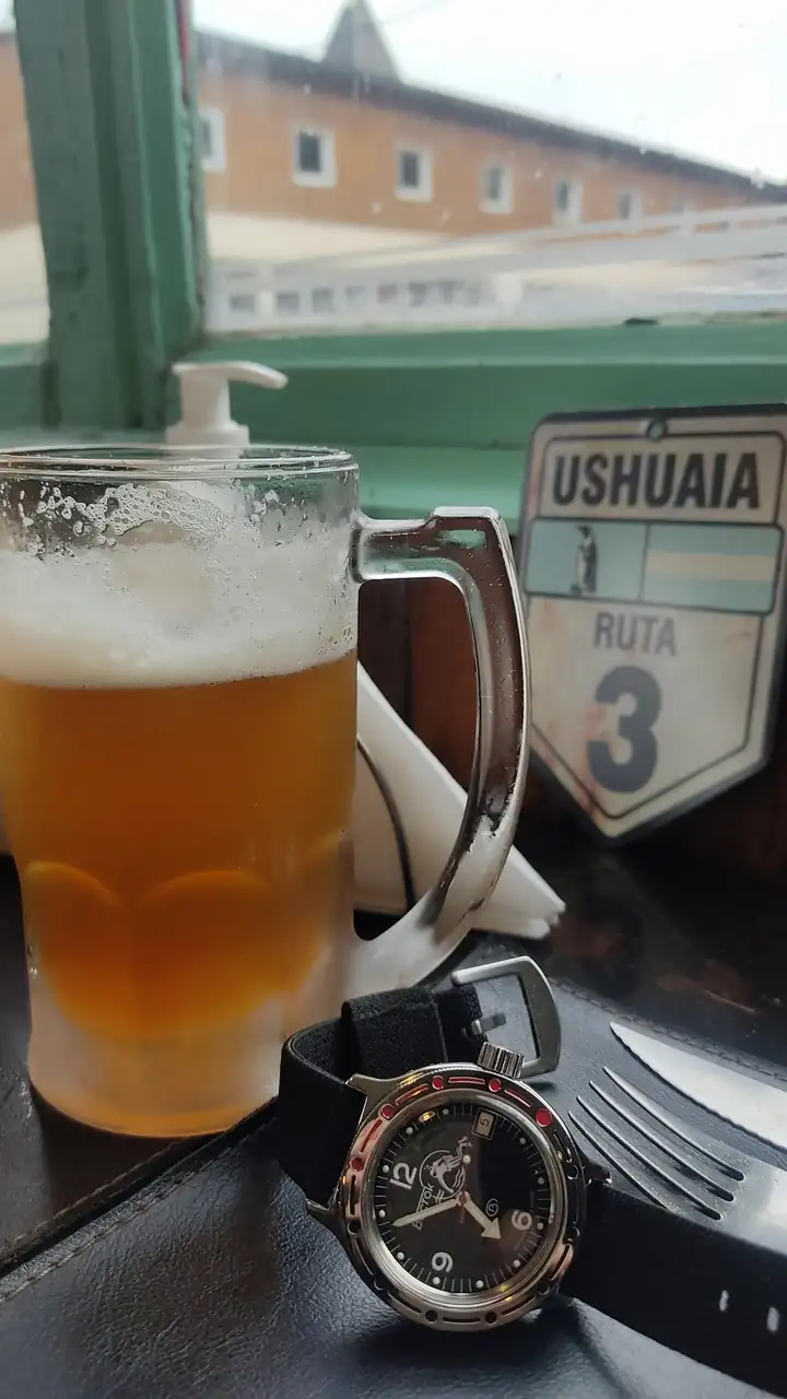 Yo voy un día más con el rusito viajero, cerveza hecha con agua del glaciar Martial, casi nada.