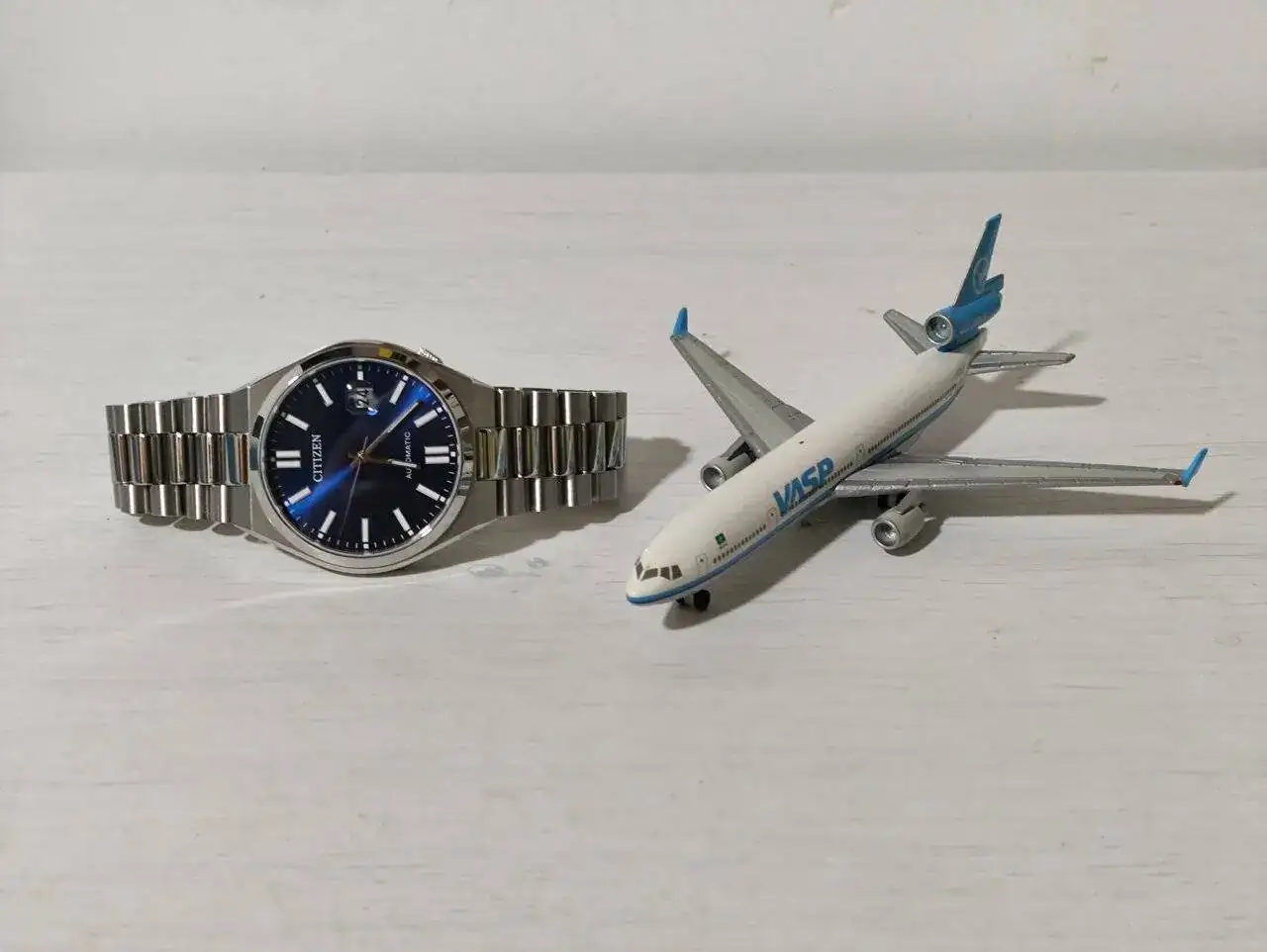 Buena foto y mejor historia.Citizen Tsuyosa y McDonnell Douglas MD-11 de VASP (Viação Aérea São Paulo)