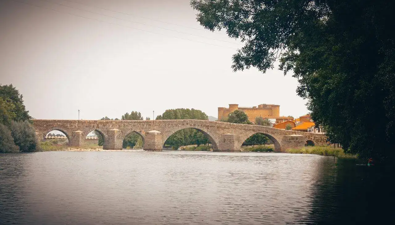 Gshock y puente románico sobre el Tormes, con sus ocho ojos todos desiguales (s.XIV). Al fondo castillo de Valdecorneja, construido en el siglo XII sobre un castro vetón del siglo V a.C y destruido por los romanos rondando el año cero.