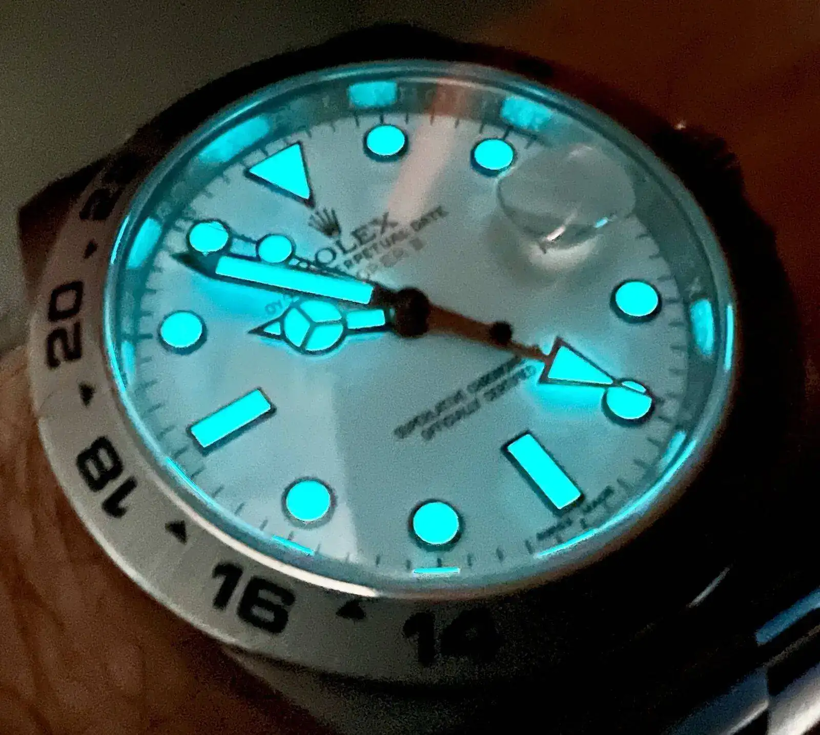 Hola Idoia, simplemente como información a tu pregunta. Sí, siempre cae ahí sobre las 6. Creo que se empezó a poner ahí a partir del 2000 más ó menos. Es como una mancha de agua y que, en el caso de Rolex, a veces cuesta verla y más sacarla en fotos. Por eso la foto de Marcel creo está bastante lograda.