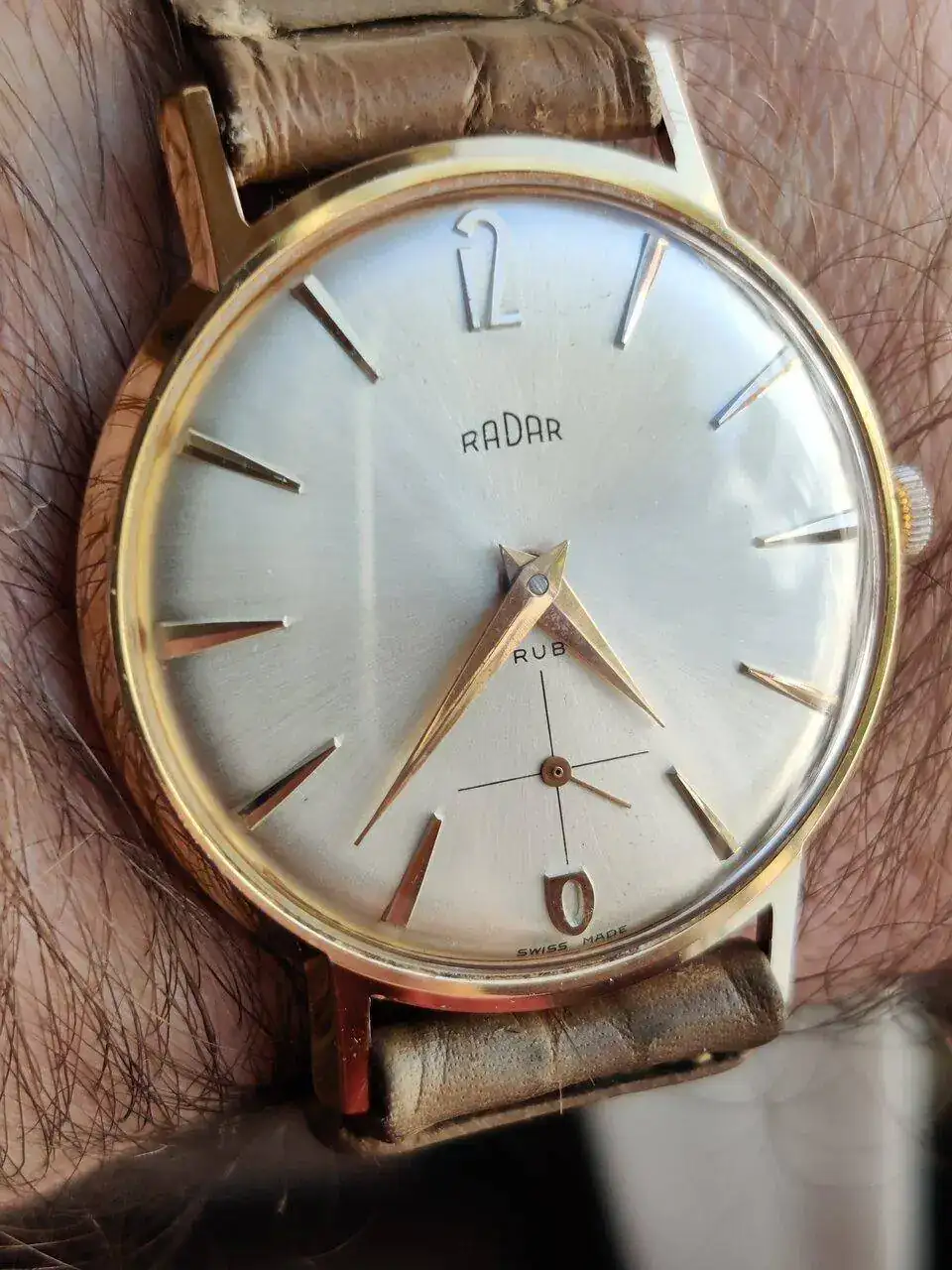 ¡Qué bueno! Estos viejitos son asombrosos... Yo le habría echado más años 60, pero vamos, tiene el mismo mérito. Y está impecable, vaya cajón más limpio y ordenado... Tanto la esfera y agujas como el dorado de la caja se ven en un estado estupendo