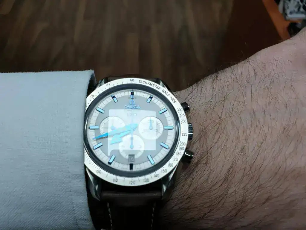 Un Speedmaster Broad Arrow sin estrenar. De momento muy contento e impresionado con la policromía de las agujas, ya iré contando mis impresiones.