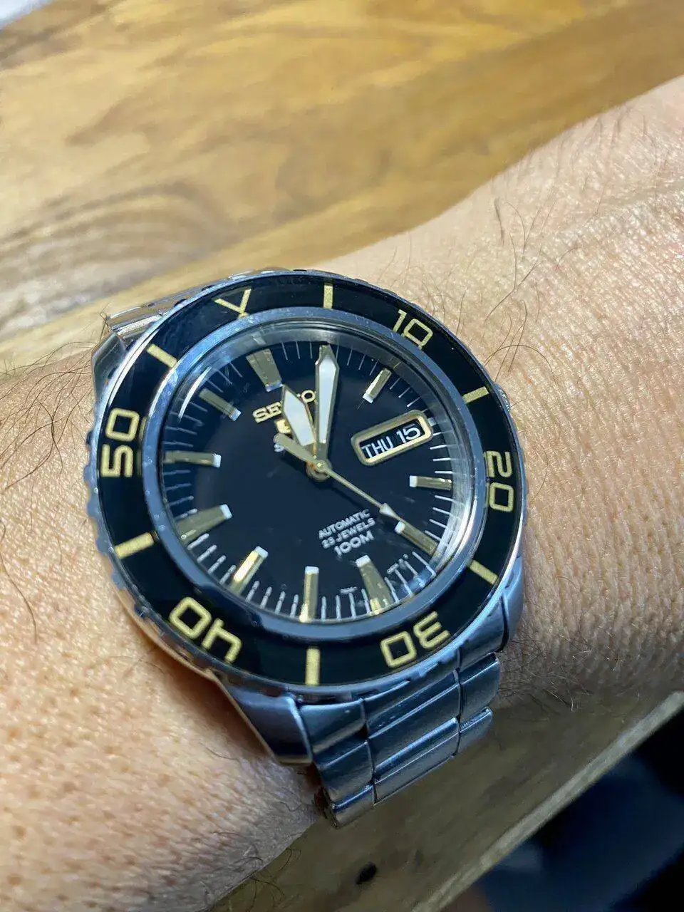 Este SEIKO con el dorado lo comprado yo hace unos 10 anos para regalarlo un buen amigo en navidades. Hasta hoy esta impecable y funciona muy bien. Muy bonito. Manana desayunamos juntos y voy a ensenarlo el hilo.Abro hilo con un reloj recuperado de las garras de mi hijo Adrià . 😀😀😀