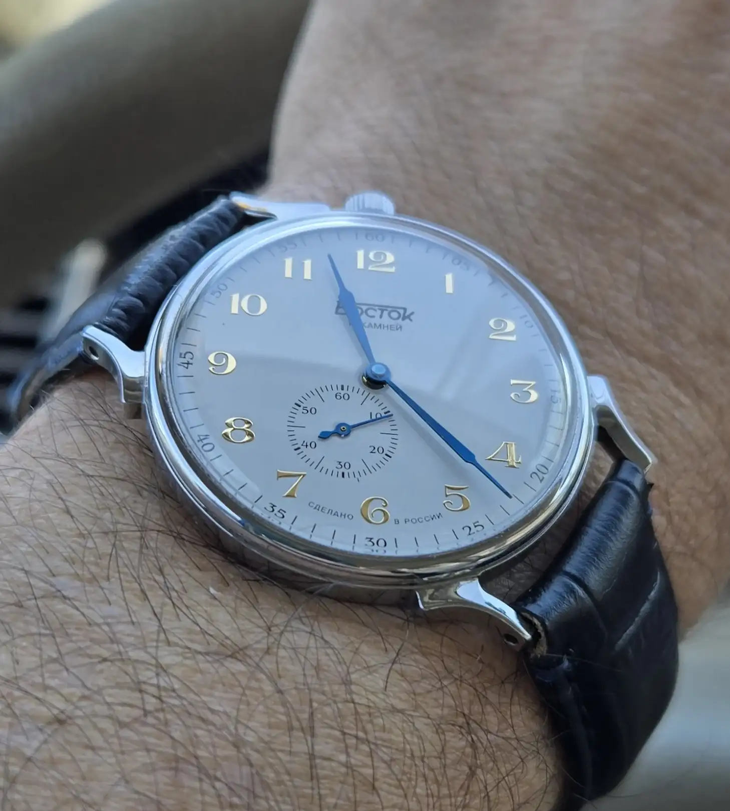 Curioso ese Vostok por la orientación de la caja, y muy bonito esa combinación del dorado de los numerales con el azul de las agujas.Un saludo, que sea un buen jueves Ver el archivos adjunto 3476205
