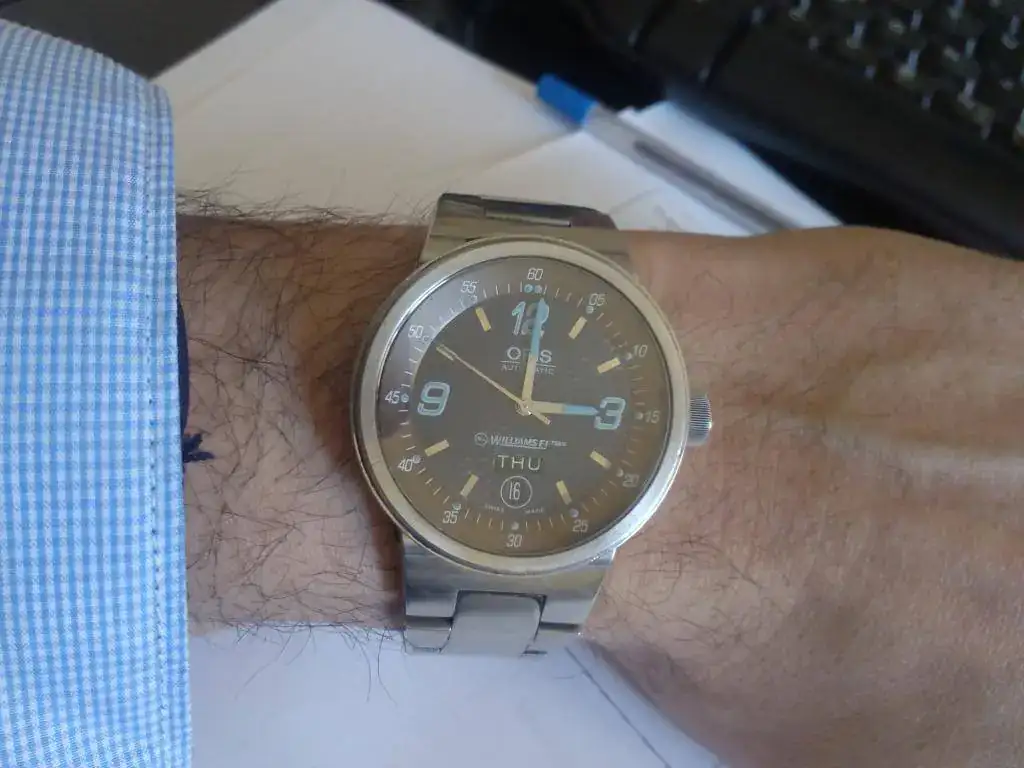 Y hoy sin querer me he vuelto a enamorar...pues si le he pasado hace unos días la toallita mágica a mi Oris y cada vez me lo pongo más. Hoy, algo más informal, me lo he vuelto a poner y me da la sensación de que va a seguir estando en la caja, por algún tiempo (como esa vecina del 4º que de repente te vuelve a gustar y volvéis de la mano el camino de vuelta del instituto...¡qué tiempos! ;-)). Ahí va la foto: