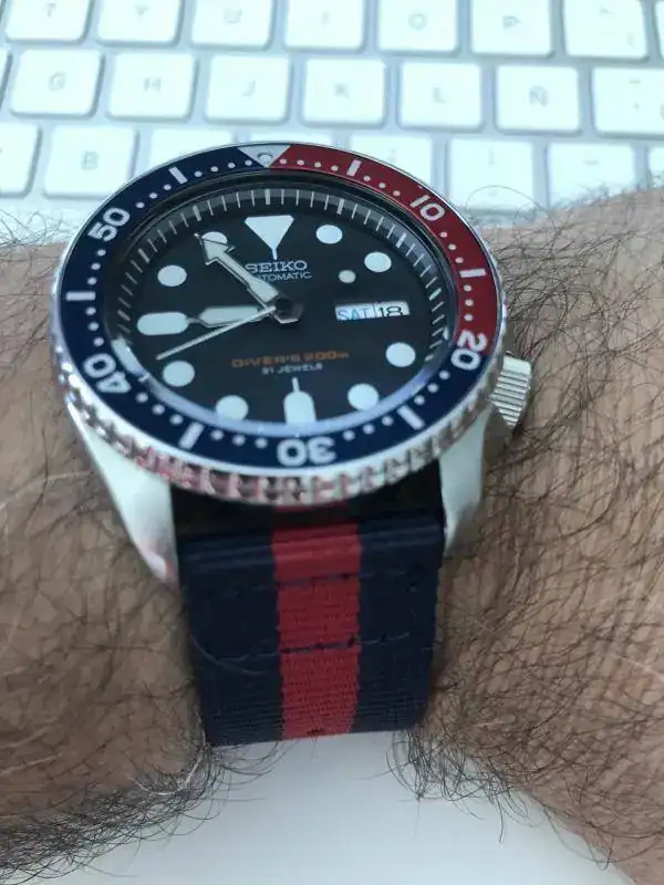 El último en llegar: Seiko SKX009 con correa de tela a juego. Bien hecho, juvenil y económico :ok::
