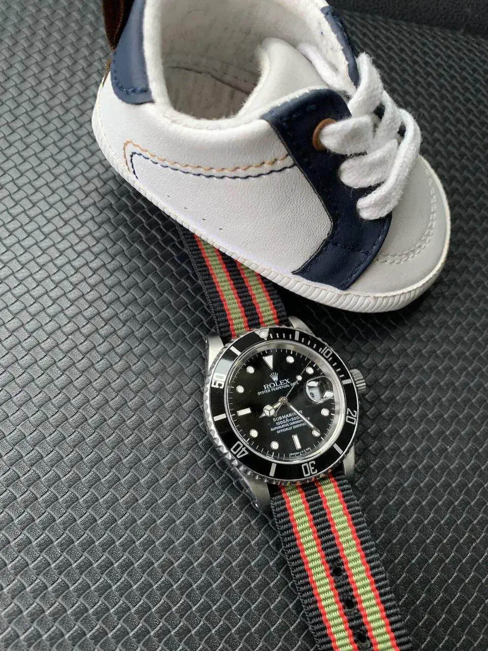 Por el tamaño de la zapatilla aún le queda tiempo pero seguro que el reloj dura hasta que se lo pueda poner tu nieto.A lo mejor algún día “se lo calza” el nieto…