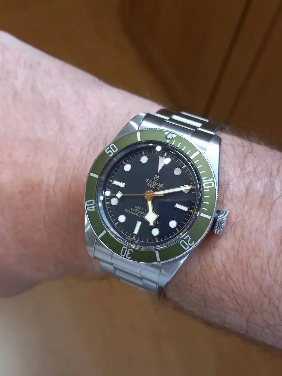 ¡Graciass! Sí, sorprende que se vea como uno de 39-40 siendo de 36. Lo que comentaba un compi, bisel fino y el dial se ve más grande y la sensación puesto cambia a sus 36 en el papel.