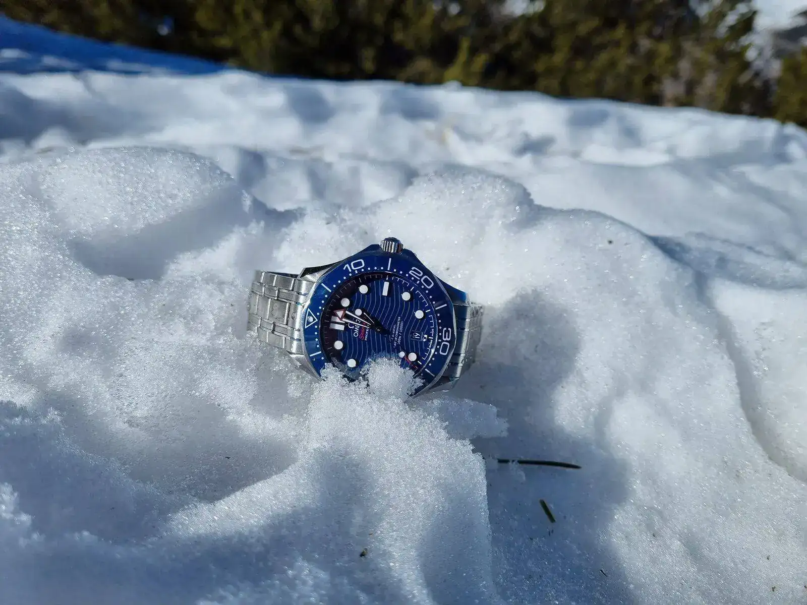 Bonita foto y bonito reloj.Hoy con el Seamaster, que me lo traje a ver como se porta cuando el agua se convierte en hielo.
