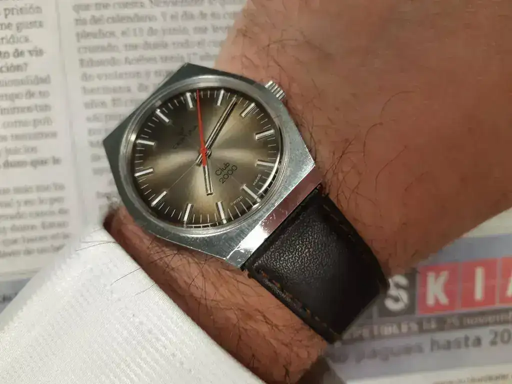 Hoy participo con un recién llegado que el amigo Josep Olvera (mi relojero de cabecera y hacedor de milagros) ha resucitado poniéndole un eje de volante nuevo que tenía entre sus archivos de fornitura. Me enamoré de esa esfera, pero especialmente de las agujas... ¡¡y no necesito gafas "delserca" para ver la hora!!