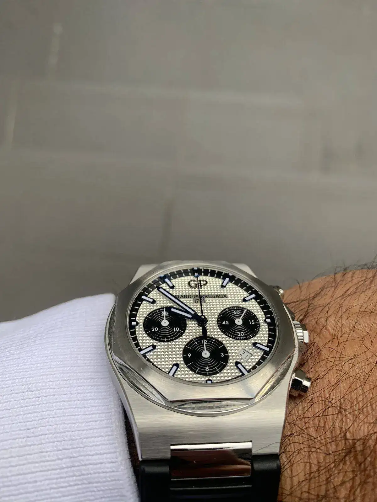 Es verdad que la tiene. Pues no se la he puesto nunca la verdad. La tengo olvidada dentro de su caja. Una lástima. De hecho, si no me lo preguntas ya ni me acordaba de que venía con la correa de cuero también. Tengo menos relojes sólo caucho en correa y por eso tiendo, en los que tienen las dos opciones cuero-caucho, a dejarlos permanentes con la de caucho.Preciosos el Laureato panda @jdortega, una pregunta: