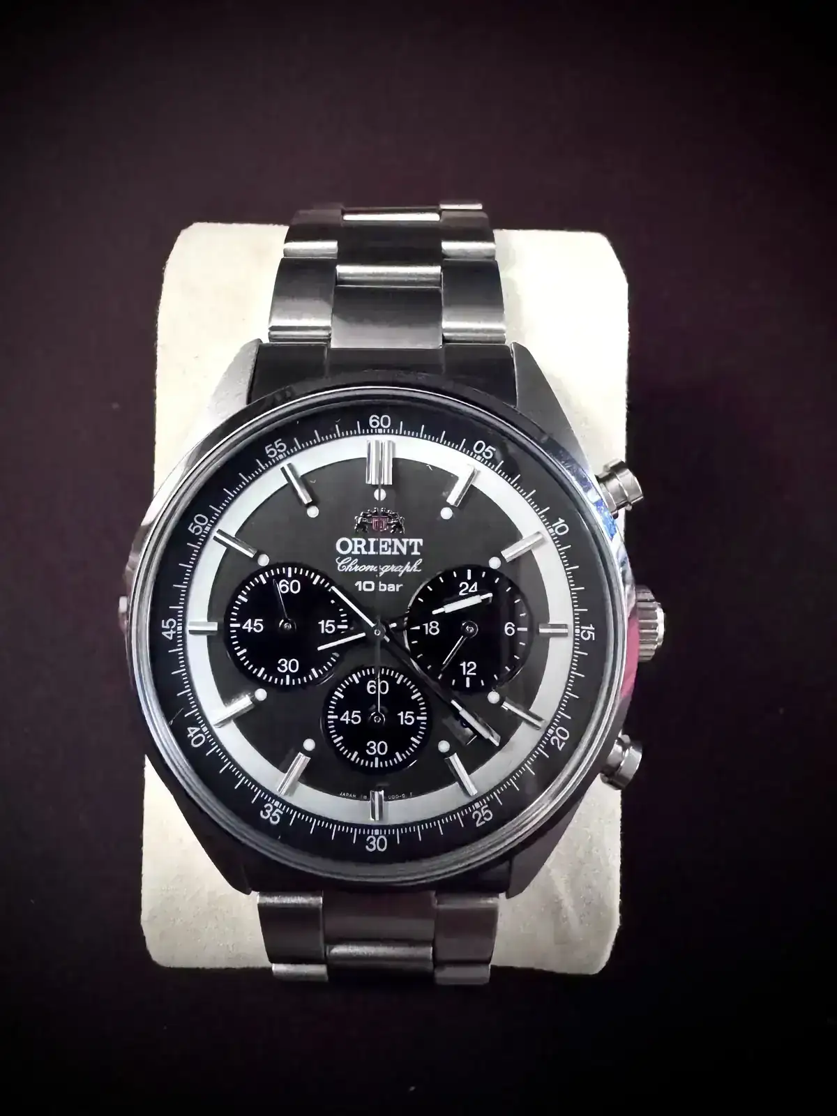 Les presento el Orient Neo70s Panda, un modelo que me tenía antojado desde hace tiempo. Me encanta su look retro inspirado en los 70, el contraste de la esfera gris con los subdiales negros y ese aire deportivo que lo hace tan versátil.