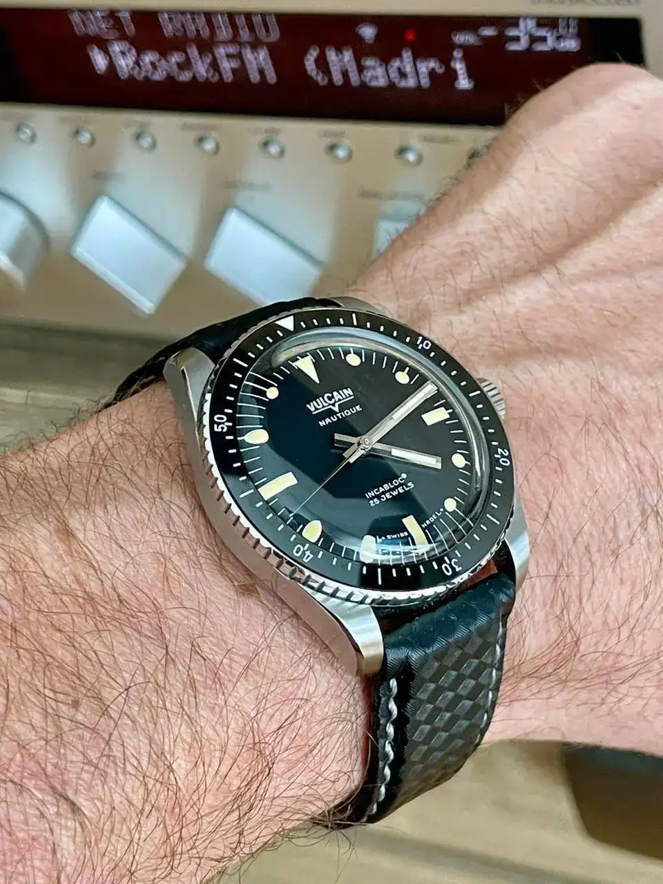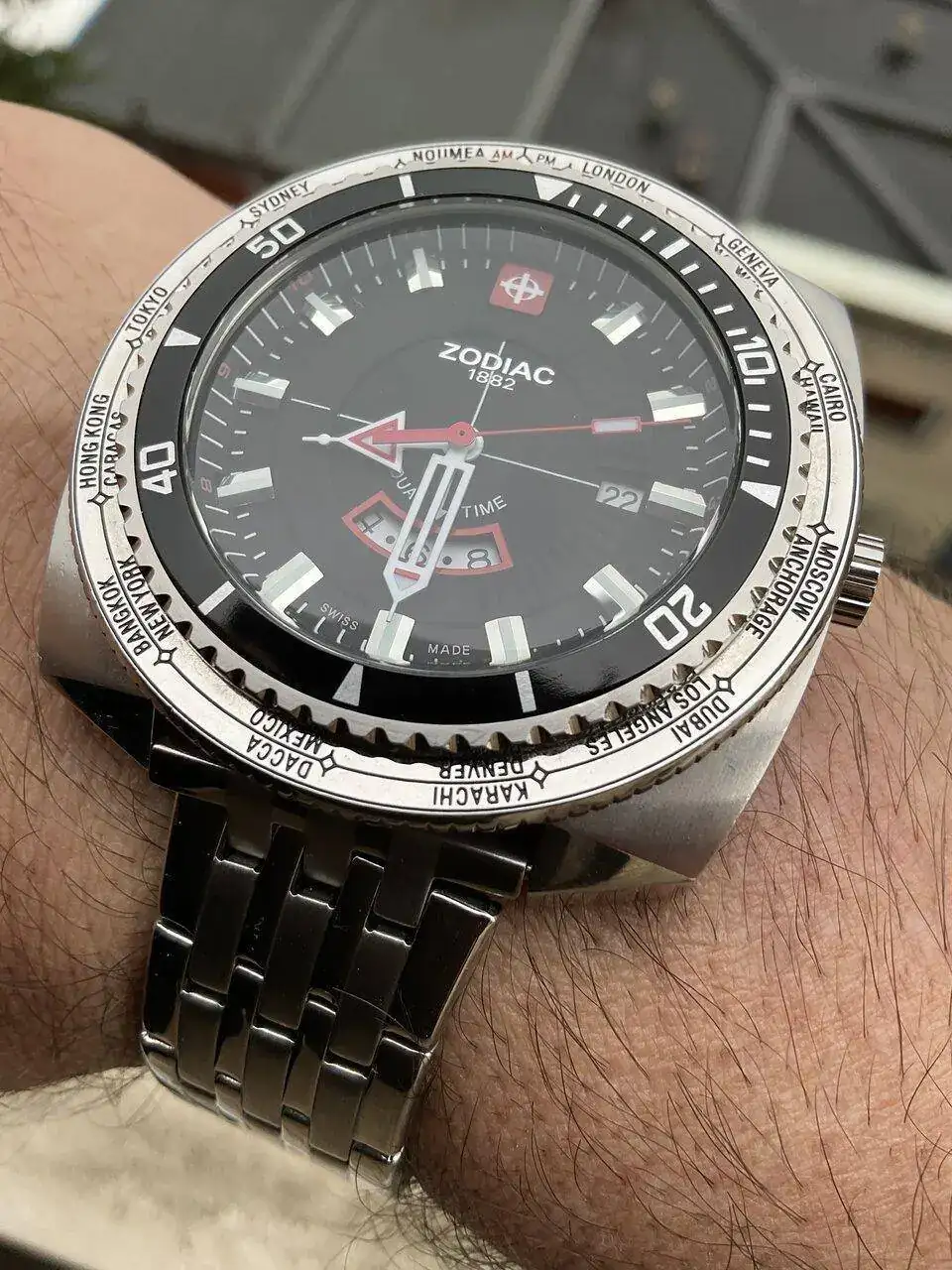 Hoy,sin tiempo para nada mas que lo obligatorio.Rapida foto de este Zodiac Sea Dragon. De la primera serie con la marca se reintrodujo en Europa tras ser comprada por el grupo americano de Tejas,Fossil. Dos Biseles uno bidireccional y el otro unidireccional.