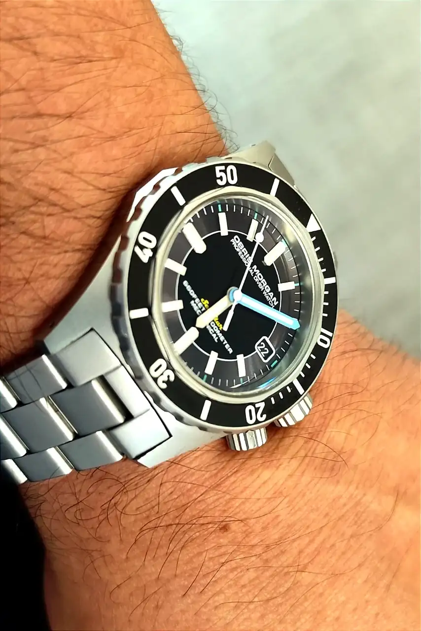 Qué descoloque de pieza, me gusta mucho. Qué caja, qué asas 😍¿Es ochentero? No recuerdo haber visto ningún Seiko de ese tipo...¡Claro que si!. Es el obris morgan 60s. Movimiento miyota 9015. Éste en particular lo compré a finales del 2021 en un estado prácticamente de reestreno. Desde esa fecha hasta ahora tiene una precisión de +-1 seg/día, y tanto la caja cómo el brazalete y cierre llevan un acabado arenado del que desconozco su composición, pero su comportamiento frente a rayones es increíble, hasta hoy no he podido hacerle una sola marca. La verdad es que en relación calidad/precio podría decir que es de lo mejor que tengo en "la caja". Si te gusta y puedes hacerte con uno te lo aconsejo enormemente, creo que será uno de los que no se va a ir nunca de mi caja.Me gusta mucho el diseño de estos Obris Morgan pero en la web solo veo modelos PVD, ¿serias tan amable de decirme que modelo es este tuyo?.