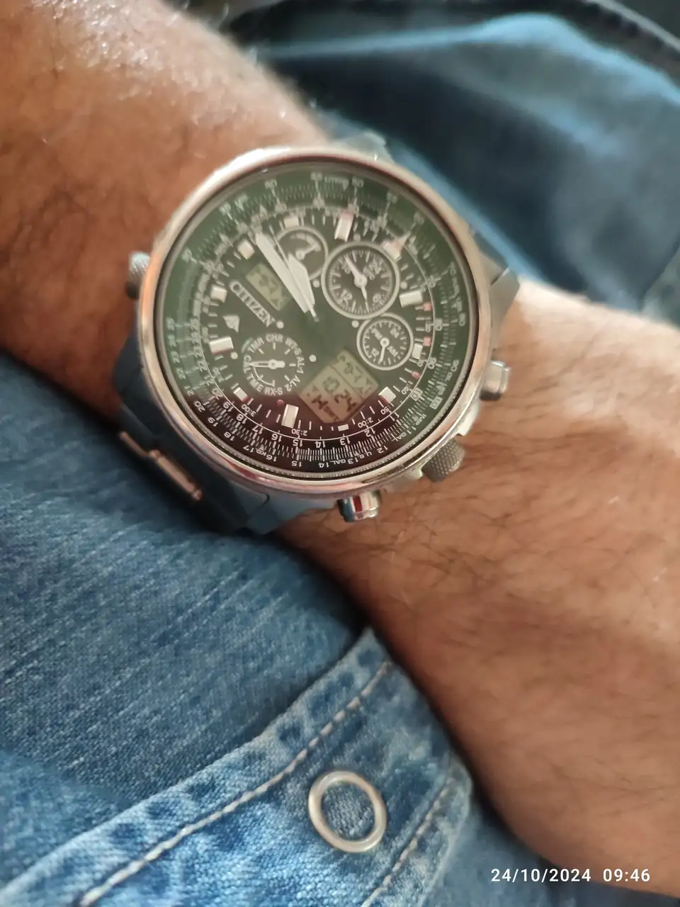 A mi pasa lo mismo, lo tengo desde hace un mes y solo lo he sacado una vez, me pierdo para ver la hora, a mis años, esto es demasiado moderno, en fín veremos si nos acostumbramos, sino lo venderemosCada vez me gusta menos este reloj pero es el único más informal que tengo por el momento. Aunque no lo crean todavía veo la hora en el reloj y en este no puedo