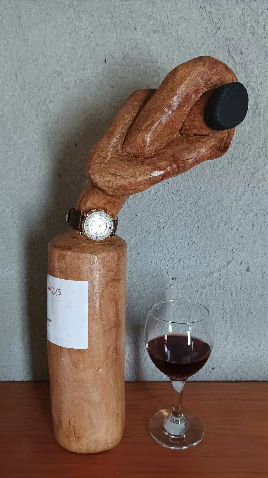 Pues me reitero en las gracias por la dedicatoría, ya más tranquilo y con "mi repaso". Es chulísima !!. Yo tengo manos de cazo, soy muuuy manazas para todo esto. Pero bueno, siempre intento rodearme de artista... y tú, obviamente, lo eres !. El reloj, pues ya sabes... Acordes siempre con tan maravillosas obras de arte.Esta botella forma parte de una exposición que hice hace uno años.