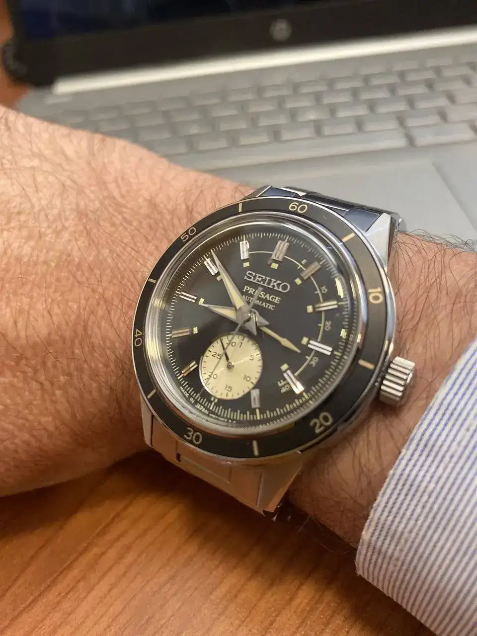 Y me he puesto mi greyghostnillas, con una nueva correa tipo ante vintage, a juego con la esfera, que creo que le queda muuuuy bien.