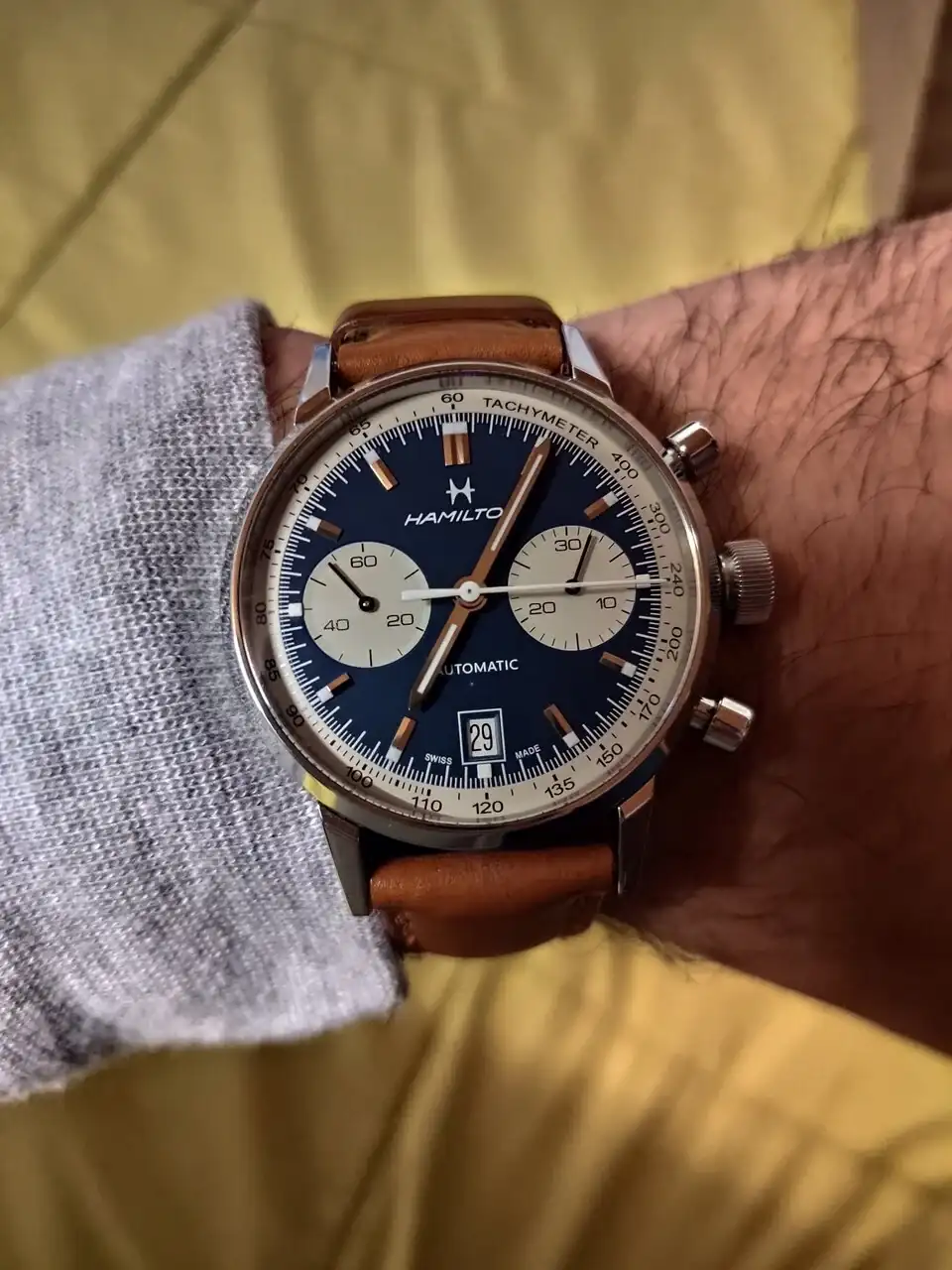 ¡Enhorabuena, compañero!Desde antes de ayer, tiene un hermano en mi muñeca, también de menos de 17 cm (16,5). Es muy bonito y versátil, una delicia el antirreflejante del zafiro, a veces parece que no hay cristal.