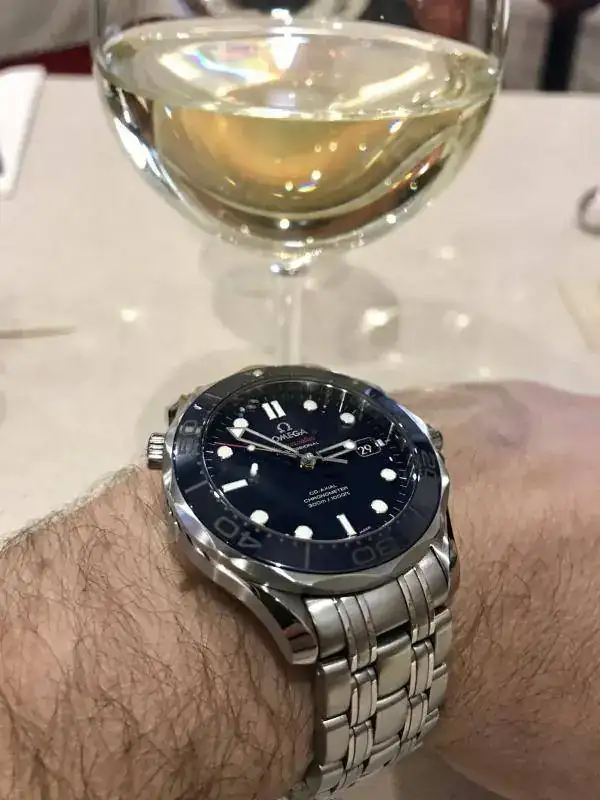 Una lástima porque me parece más bonito el tuyo que el nuevo. Ahora con la nueva maquinaria, las olitas y sus 42mm creo que me gusta menos.Hoy Omega (que pronto descatalogarán) en buena compañía y con un buen vinito blanco