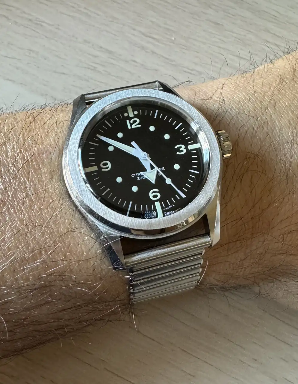 Al igual que los divers, los relojes de campo también pueden ir encima de la ropa. De ahí la extensión.