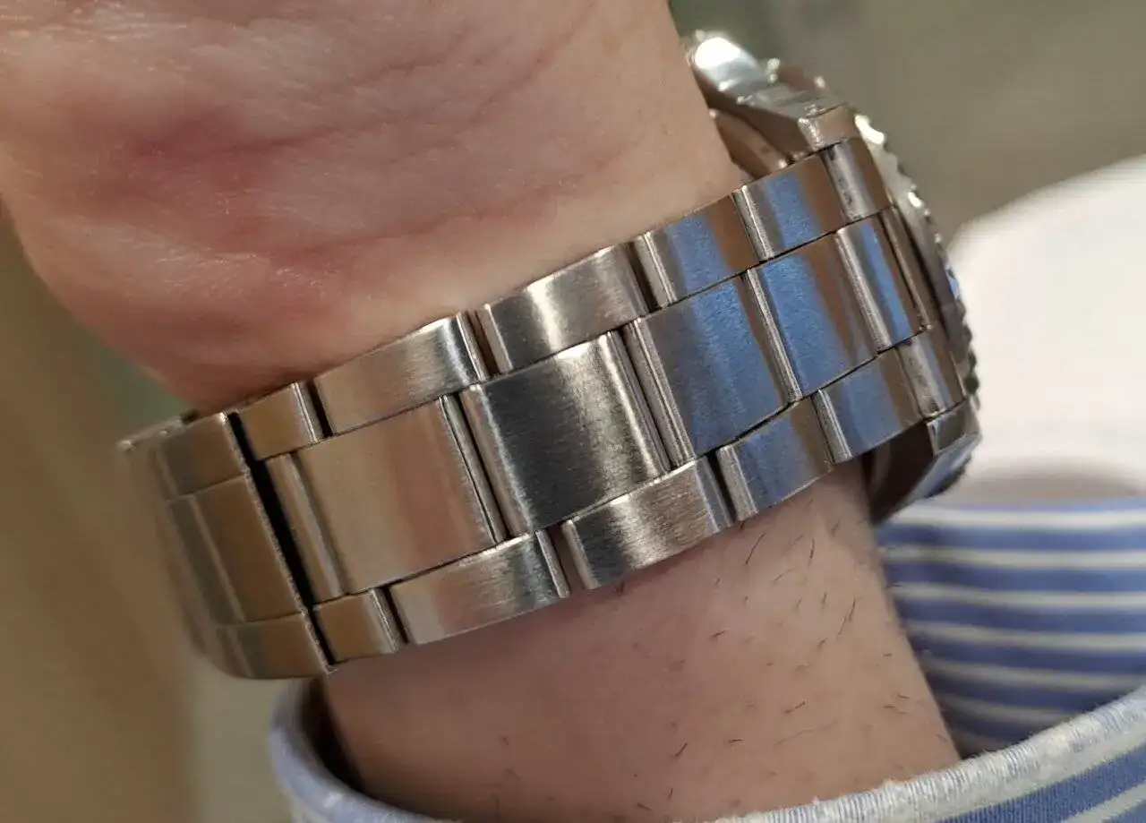 Queda perfecto.Acabo de recibir mi vulcain con el nuevo brazalete. Le tenía miedo porque no me gustó mucho en las primeras fotos que sacaron, y tampoco estaba seguro que fuera cómodo en muñeca pequeña, pero muy contento, le da mucho carácter y parece cómodo