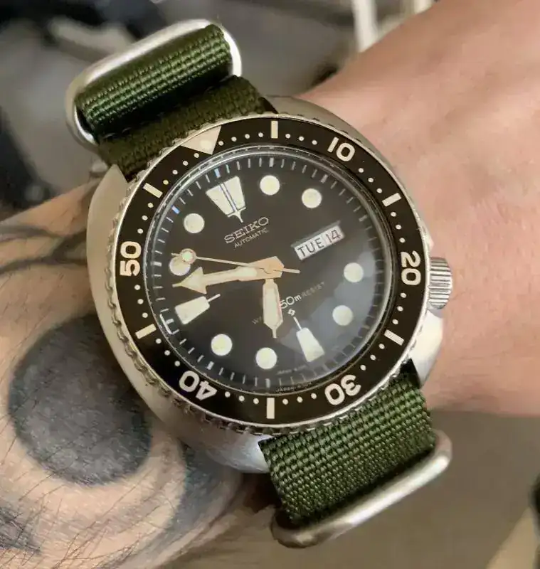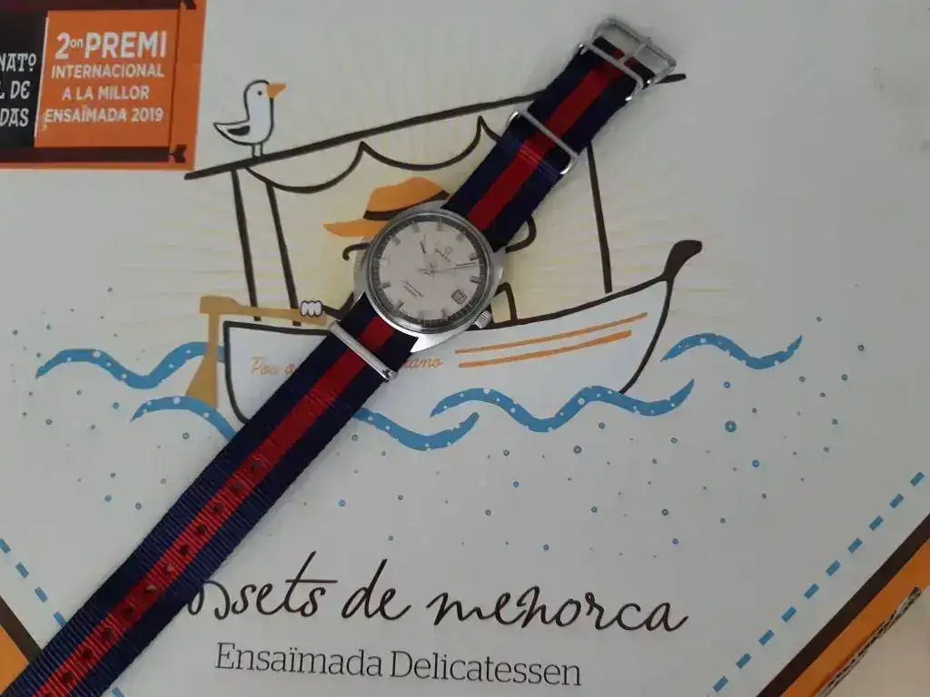 Me llegó sin brazalete, le puse uno que tenía por casa, es de citizen pero no es del reloj.