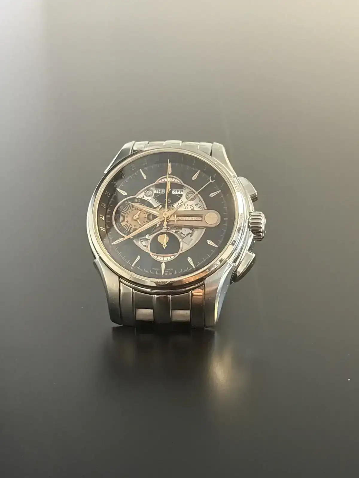 De Ville chronograph 146.017. Pero no termino de decidirme, pues me parece que 35mm es un poco pequeño. Aunque creo que por su diseño no se verá demasiado pequeño. Desde luego en tu muñeca se vé genial. Pero me gustaria para decidirme, poder verlo personalmente, y creo que eso será un poco dificil. En Chrono24 hay (o habia) solo 5 en venta, si fuese de 40 ó incluso de 39, ya lo tendria con seguridad, Perooo... Ya veremos, aunque no quiero comerme demasiado el coco.