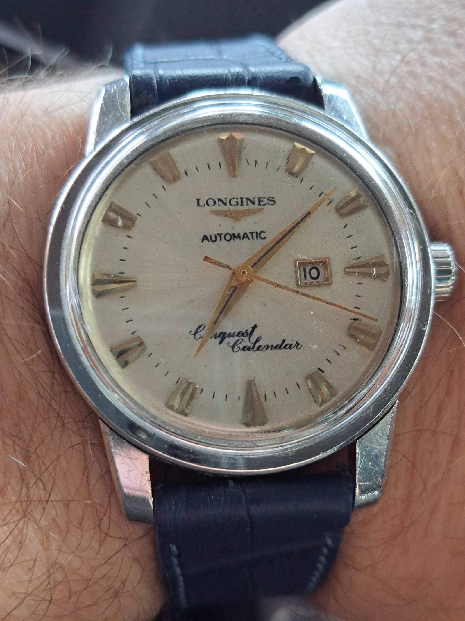 Un Conquest 9004 de los años 50 que no iba. Dentro lleva un movimiento manufactura de Longines, el 19ASD.