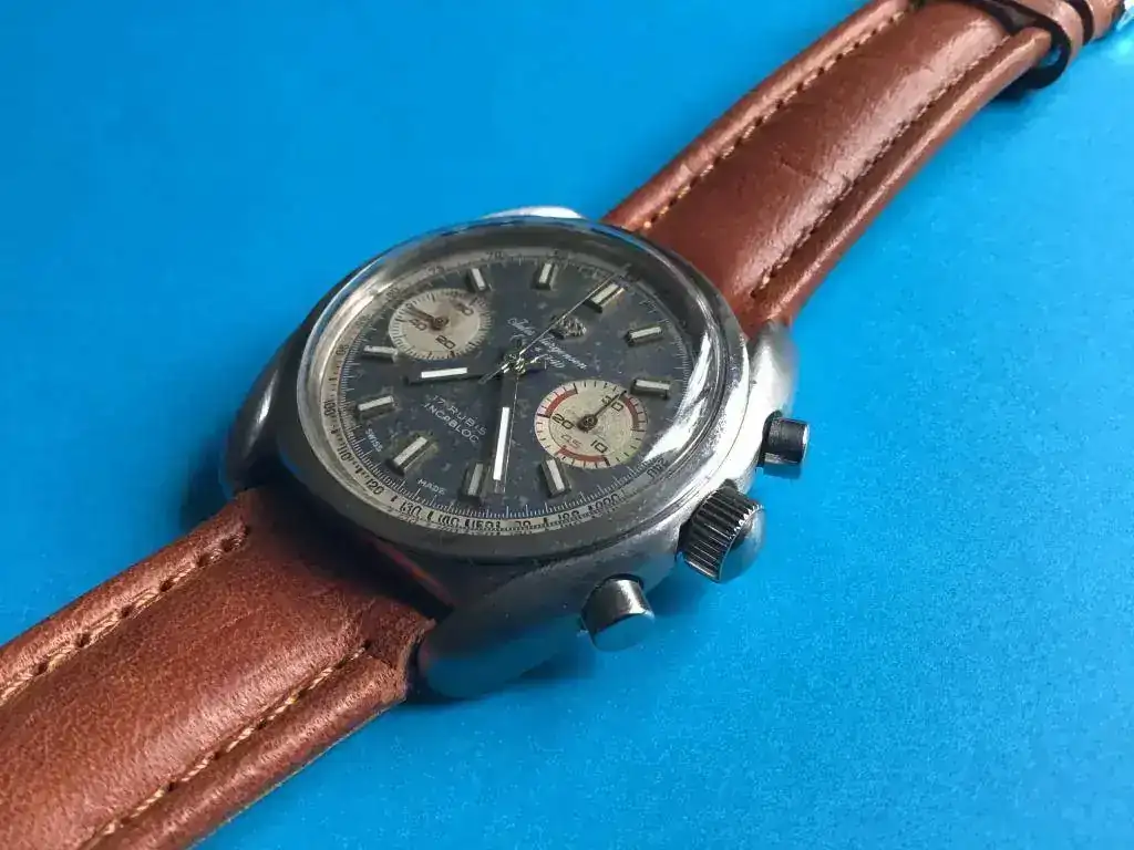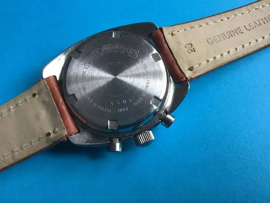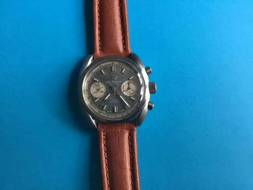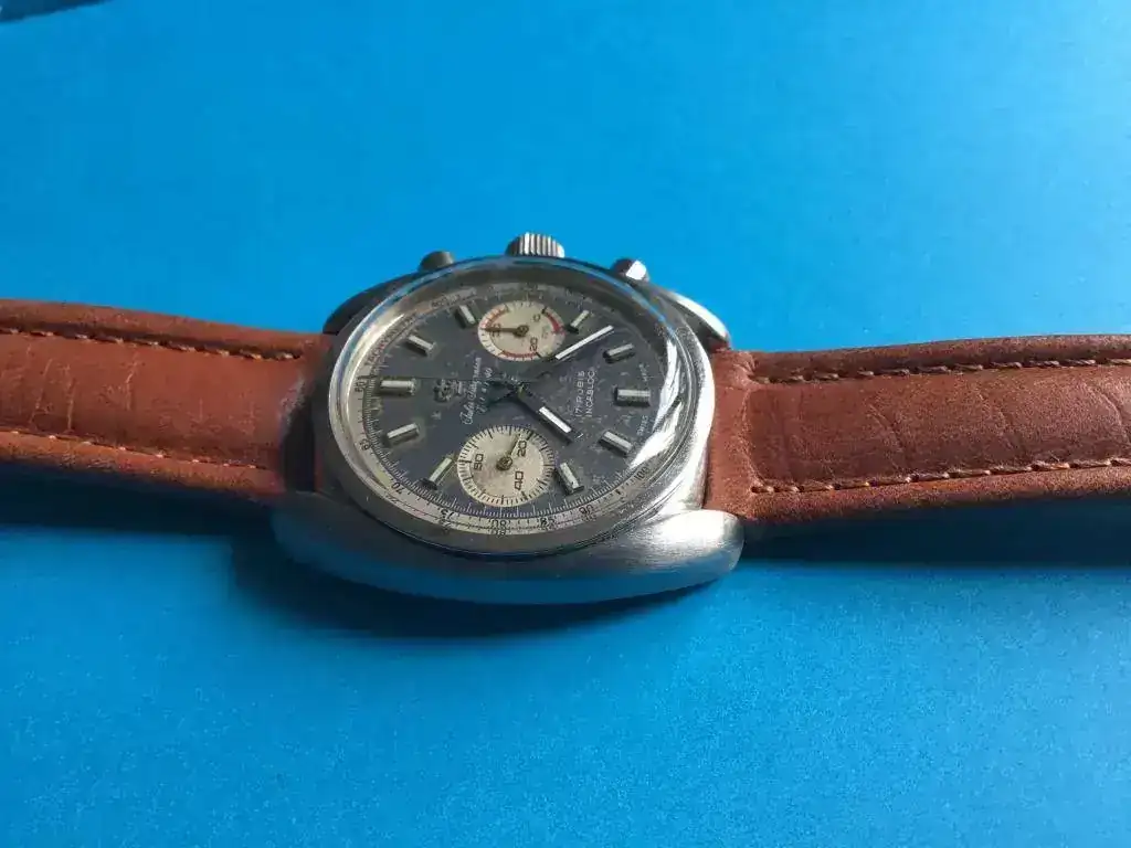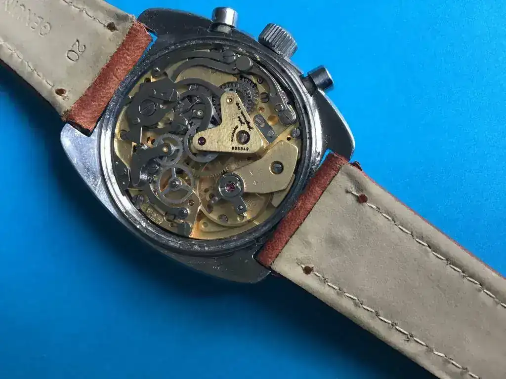 El movimiento es un Valjoux 7733 que según el previo propietario ha tenido un servicio reciente.