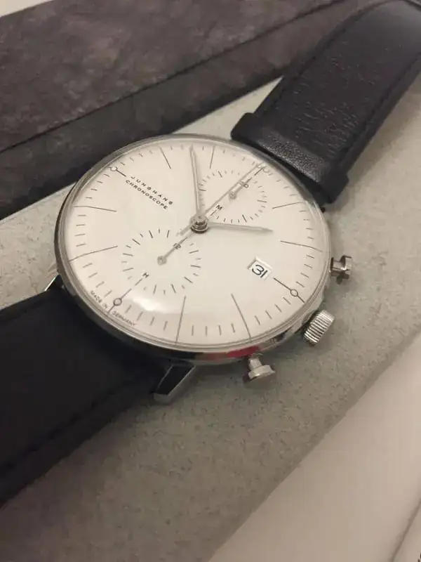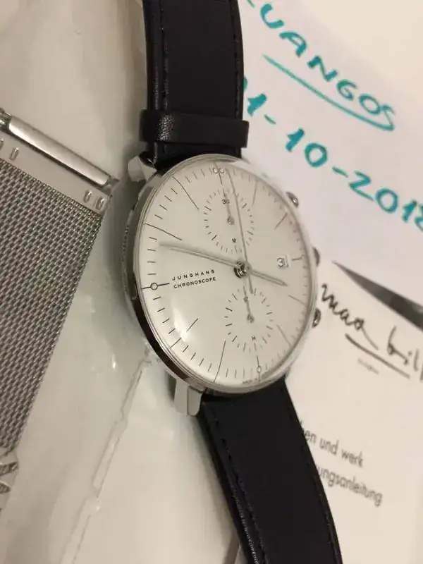 Saco solo para venta este precioso Junghans Max Bill Chronoscope, reloj icónico y de sobra conocido en el foro, que se encuentra en perfecto estado, lleva la correa original con menos de seis puestas, vamos prácticamente nueva, también lo acompaño de una milanesa por si se quiere dar un cambio de aires.
