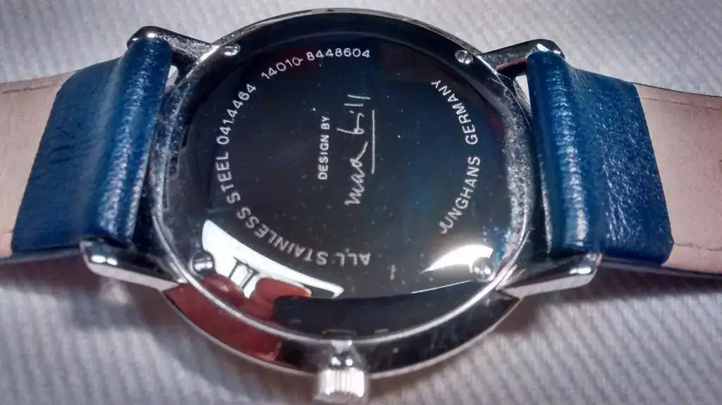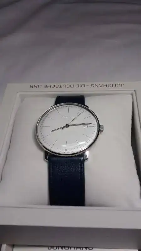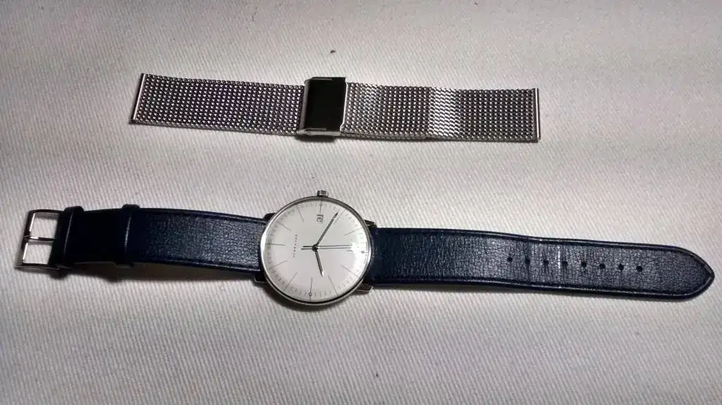 Vendo reloj Junghans Max Bill de cuarzo, con muy poco uso y sin ningún defecto, con dos correas (una original de cuero azul marino y una milanesa fabricada en Alemania, no original de Junghans pero que se adapta perfectamente al diseño del reloj).