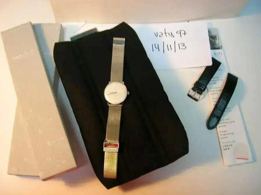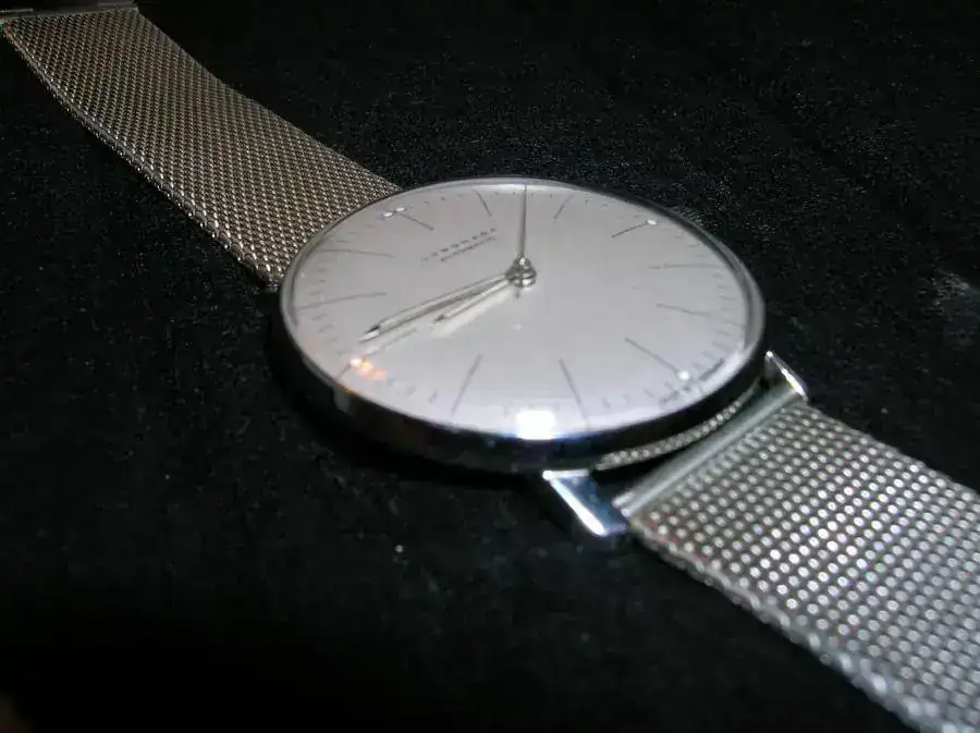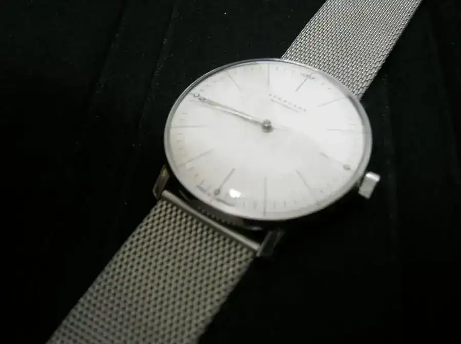 Bueno compañeros, continuo en busca de una preciada pieza y para ello tengo que hacer caja y hueco, esta vez le toca a un Junghans Max Bill, su estado es casi perfecto por la parte visible, esto es esfera y armis, por la parte trasera tiene unas microrayas de rozarse con el cierre de la milanesa, el reloj es del 2009 tiene caja, papeles y una correa ,sin uso, de piel negra original de Junghans, su precio es de 480€ gastos de envío aparte, si eres de Madrid el cambio se puede realizar en mano, para esta pieza no acepto cambios, pero escucharé vuestras ofertas y responderé a todas, pero por favor solo ofertas razonables.