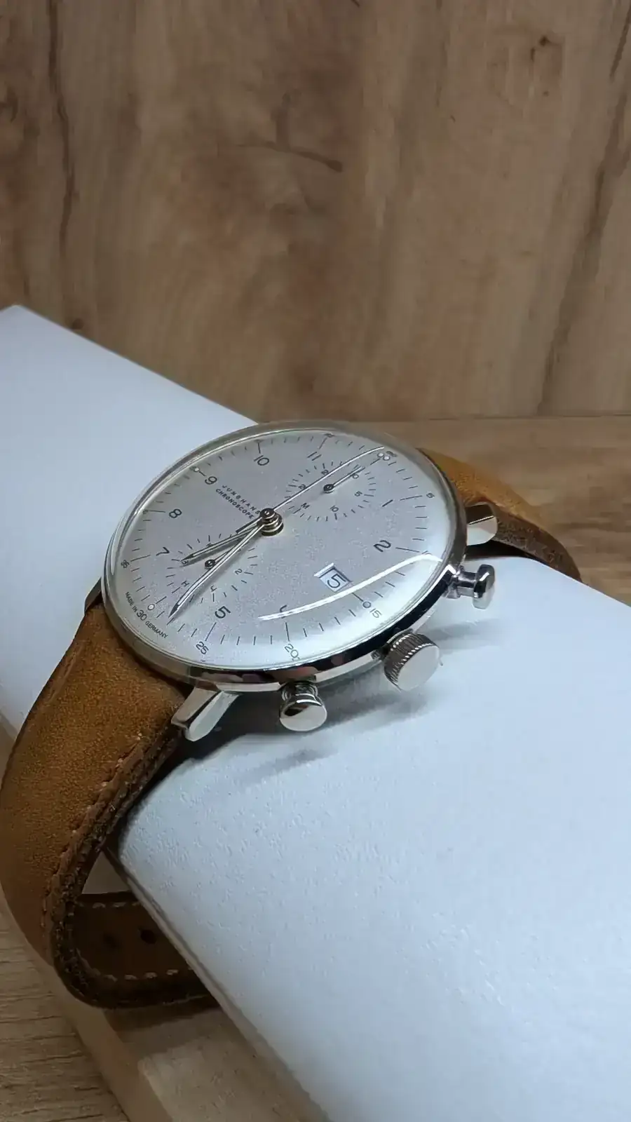 Junghans Max Bill Chronoscope. El negrito, 40 mm de caja (que no, que no es tan grande como parece en fotos) y ese estilo Bauhaus incontestable, limpio, funcional y sin una línea de más. La forma sigue a la función era el postulado de esta escuela de diseño alemán de los años 30 , Apple sigue usando este lenguaje de diseño.