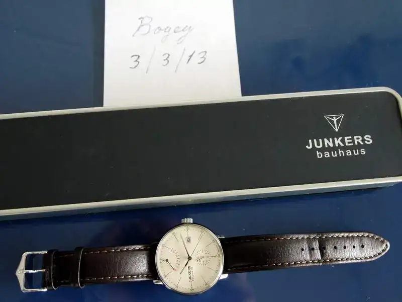 Vendo este Junkers en perfecto estado, de reestreno. Soy el primer propietario, y está impecable, con poquísimas puestas. En las fotos se muestra con una correa Hirsch no incluida, pero se enviaría con la suya original, que está practicamente sin uso (puesta una vez, como me quedaba larga, le puse la Hirsch).