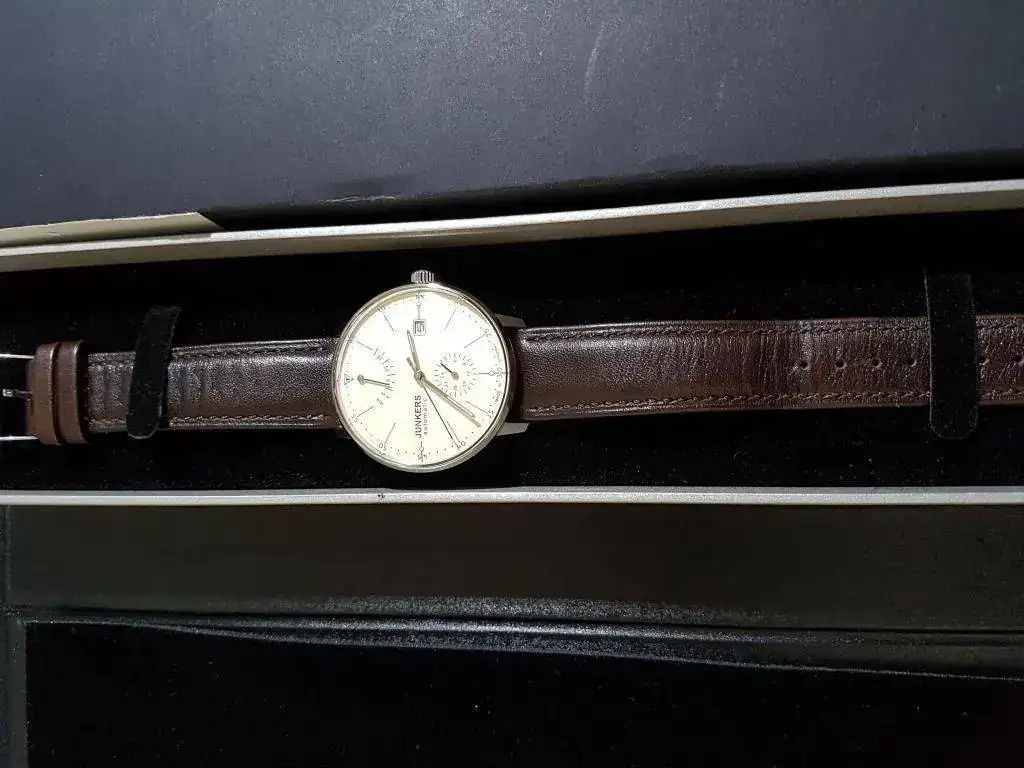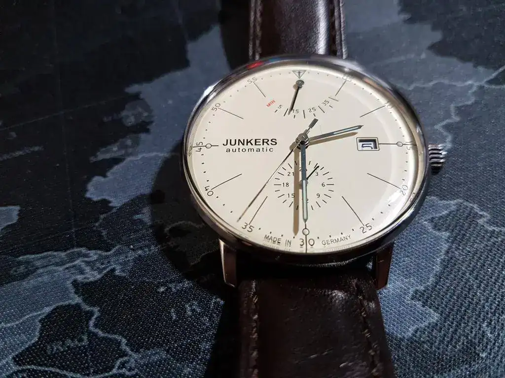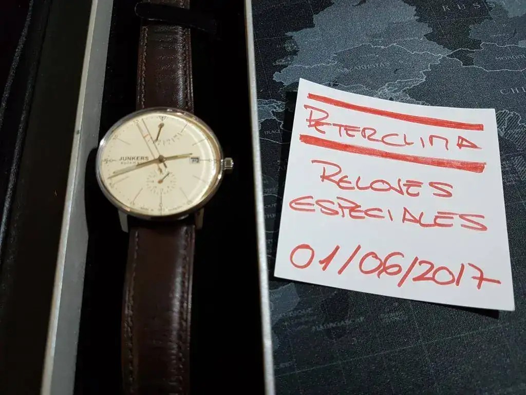Siguiendo con el vaciado de la caja para hacer sitio a otras piezas que están por llegar, saco a la venta este JUNKERS 6060-5 en estado impecable, en el tiempo que lo he tenido me lo habré puesto menos de 10 veces y siempre para eventos, de hecho aun conserva el plástico que cubre el cristal trasero. No he sido capaz de ver ninguna marca