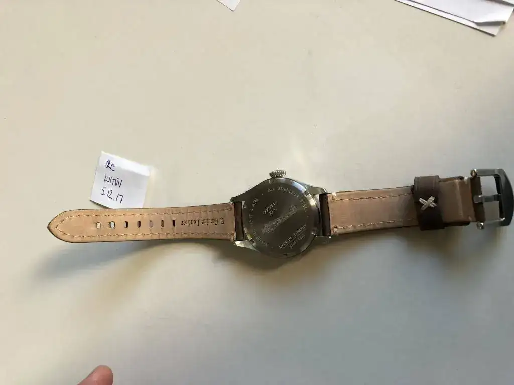En perfecto estado, le cambié el cristal por un plexi para darle un aire aun mas retro y de piloto; con correa de piel Vuelta con cosido preciosa