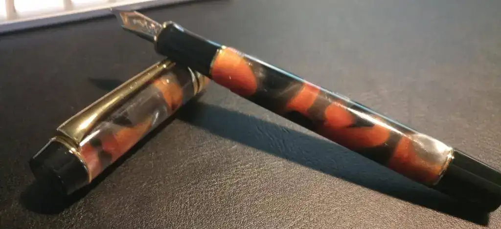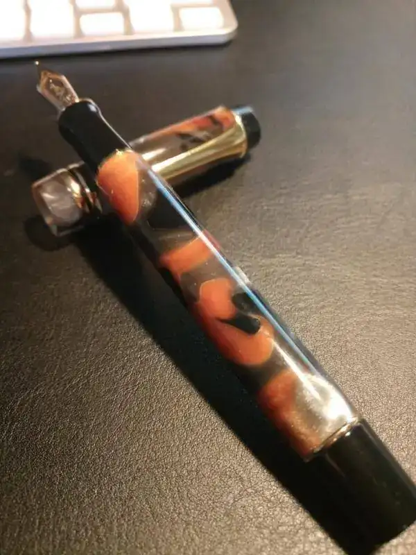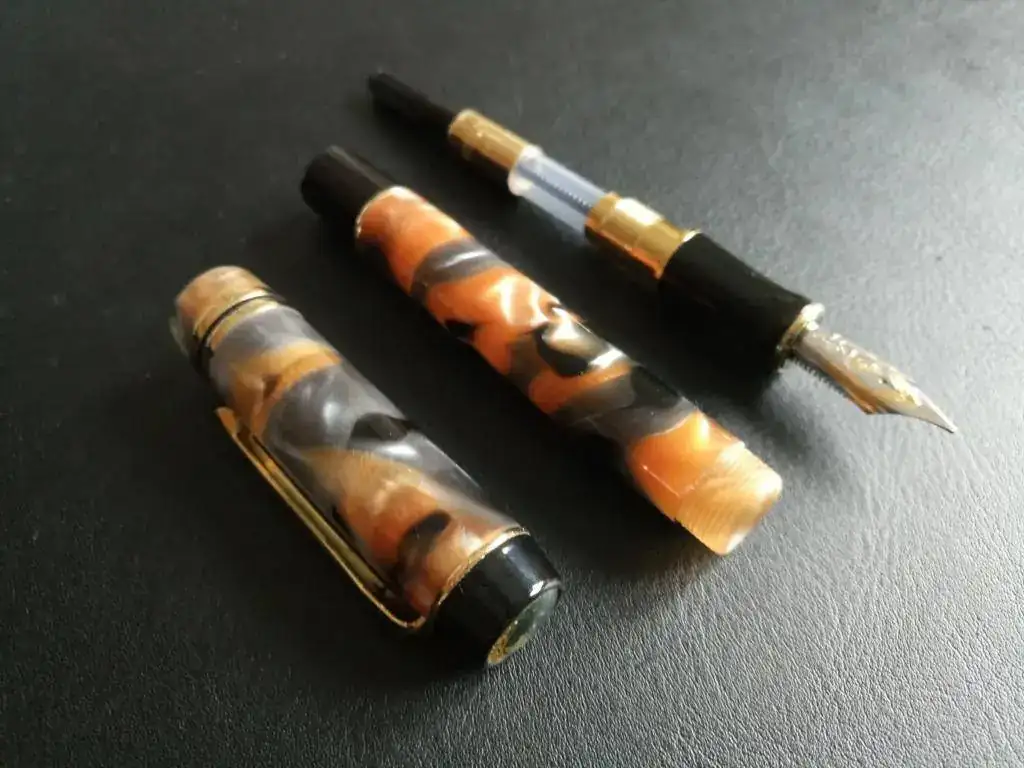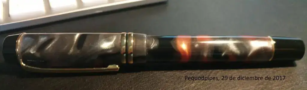 Buenos días compañeros, intentando dejar espacio para nuevas entradas os ofrezco hoy una chinita de todos conocida la KAIGELU 316, homenaje oriental de calidad a la Duofold. Se trata del color ámbar que me parecía el más chulo cuando la adquirí. Podría deciros esto y aquello sobre esta pluma pero la verdad es que está de sobra tratado en diferentes hilos del foro. La pluma está casi nueva, la habré recargado dos ó tres veces máximo, sin marcas, golpes o rayas. Lo que podáis ver son pelusas y motas de polvo que me comen en el despacho.