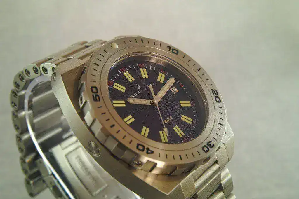 Testado segun se comenta a 6000 metros, con ETA 2824-2, una caja de 42,5mm y un bisel de 44mm