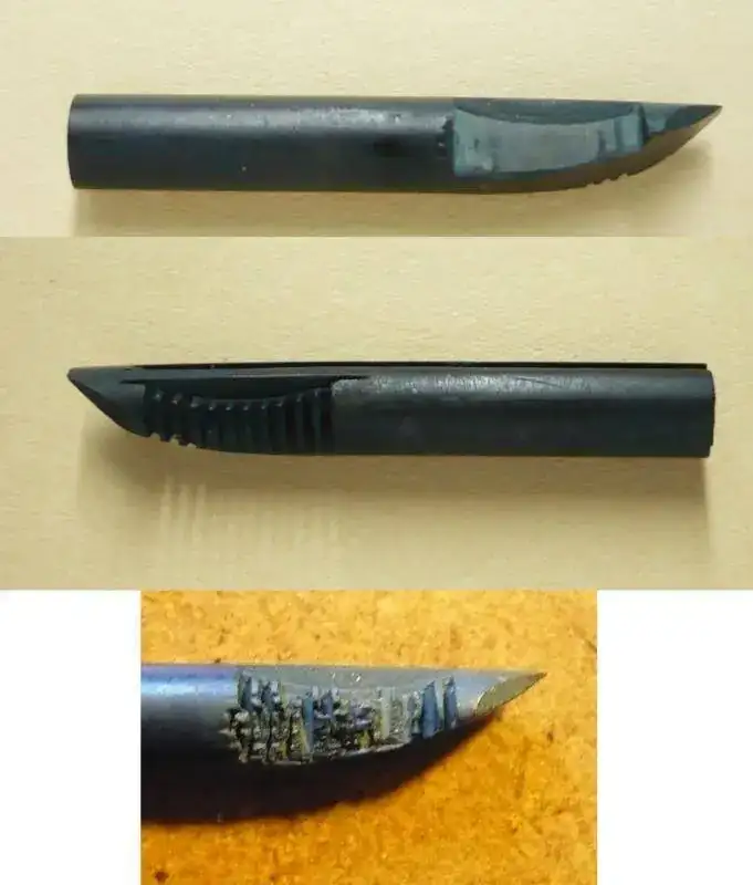 Ha sido restaurada, pues la compré en un estado un tanto lamentable: le he puesto un émbolo nuevo de corcho; el alimentador tenía desgarradas las aletas de un lateral (habían intentado extraerlo con unos alicates), por lo que decidí limar lo que quedaba de ellos. He preferido dejar puesto el original, pues funciona perfectamente. No obstante, se puede colocar uno (entero) de ebonita; Julia Gusano los vende por 2€. Por último, los anillos del capuchón están sujetos con un poco de pegamento; por lo visto estaban sueltos.