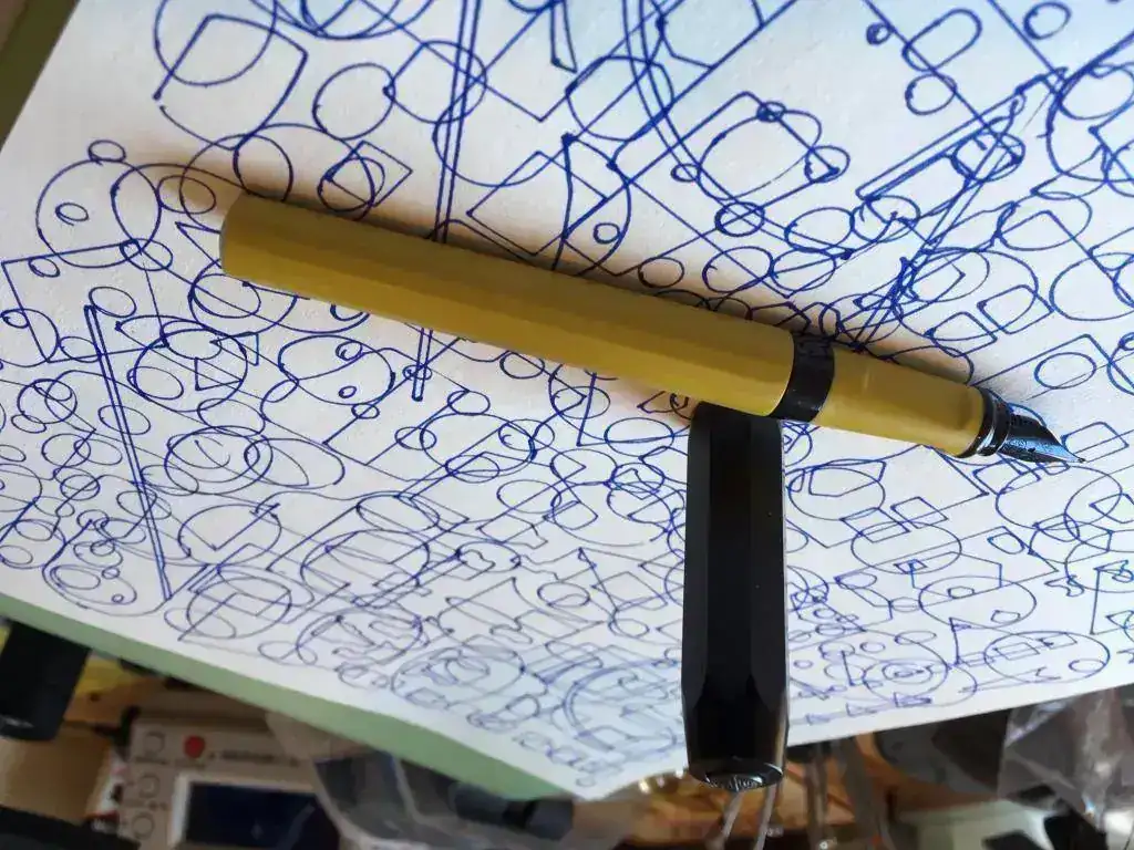 Anduve un poco jugando y dibujando a ver cómo escribe: lo que ven en el papel de las fotos está escrito y dibujado con ella. Datos técnicos no hacen falta: acá hay mucha gente que sabe mucho y ya saben de memoria cómo es esta Perkeo.