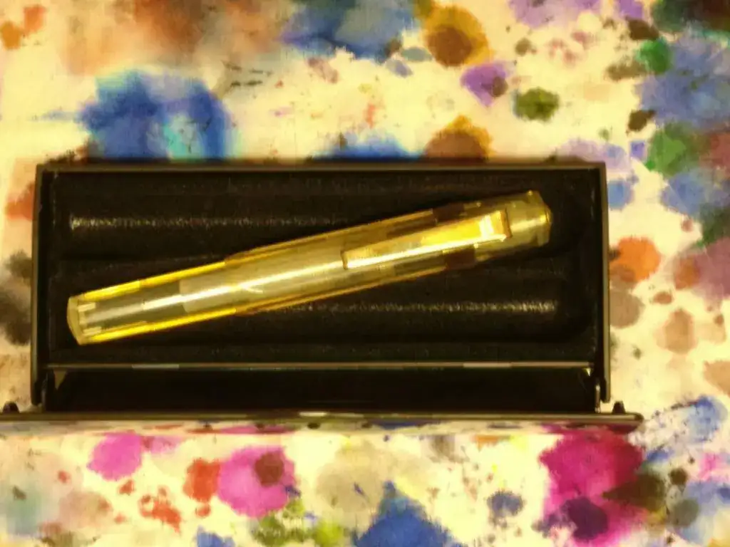 Se trata de una pluma pequeña, de bolsillo, con un gran capuchón que le permite pasar de ser una pluma minúscula a un instrumento de escritura funcional. Es ideal para viajar ya que no ocupa nada de espacio.