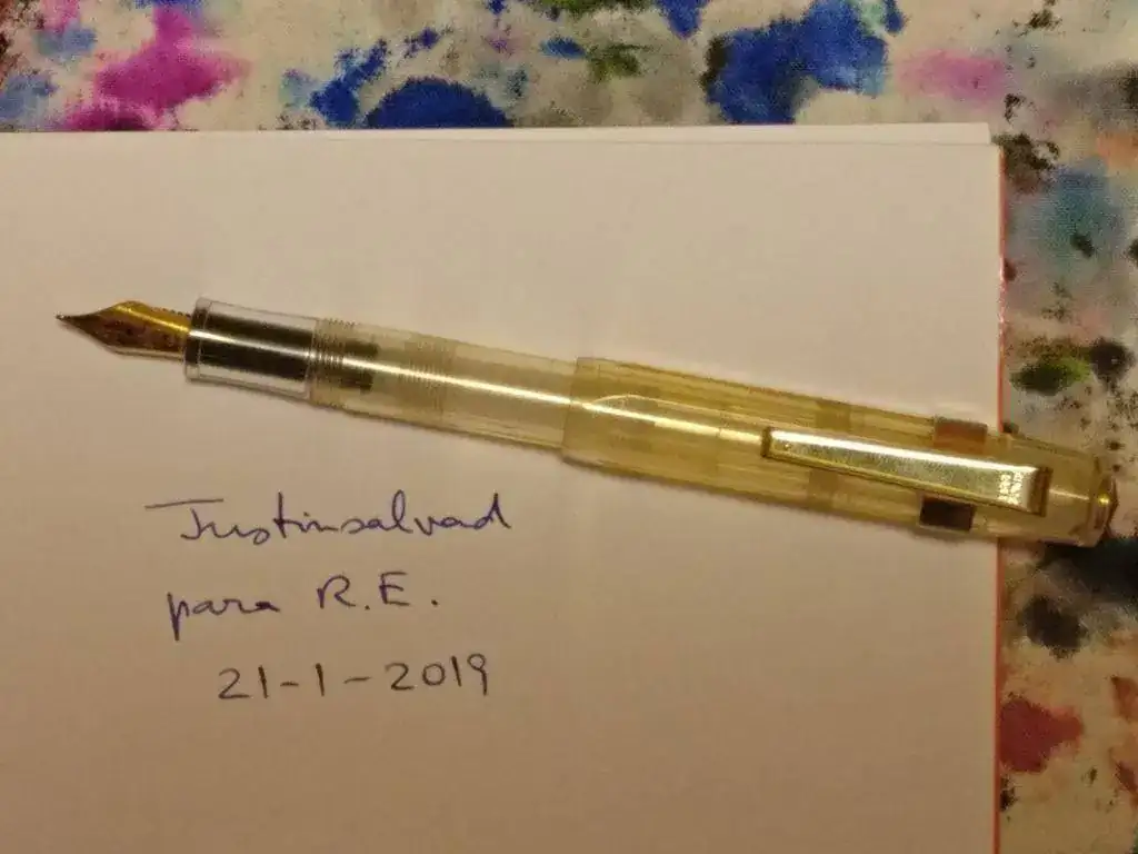 Me sabe mal ponerla a la venta por lo bien que escribe. Su plumín es suave y eficaz... pero no la uso. Diría que es un M.