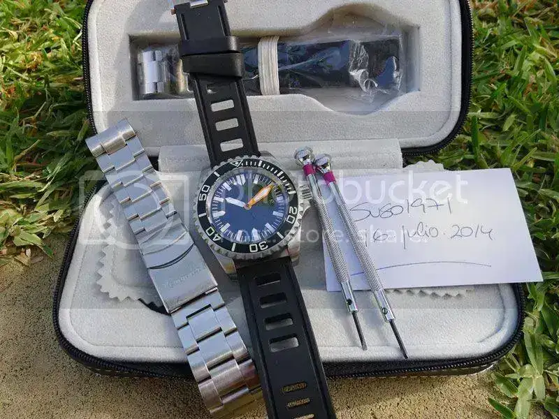 El reloj se entrega con su caja original (tipo viaje) herramientas de cambio de correas, armis acero y correa de caucho originales. Lo único a reseñar es que al armis le faltan dos tornillitos, me imagino son fáciles de conseguir, en todo caso es de los eslabones sobrantes…